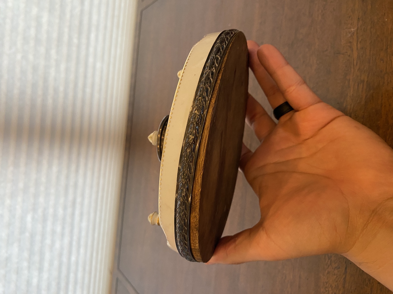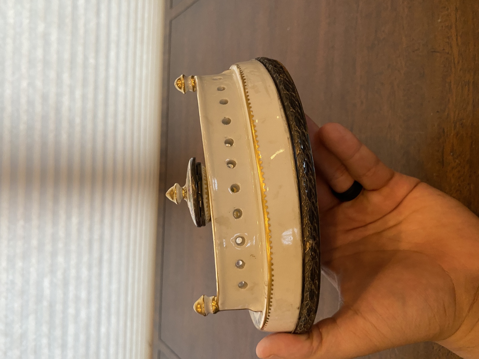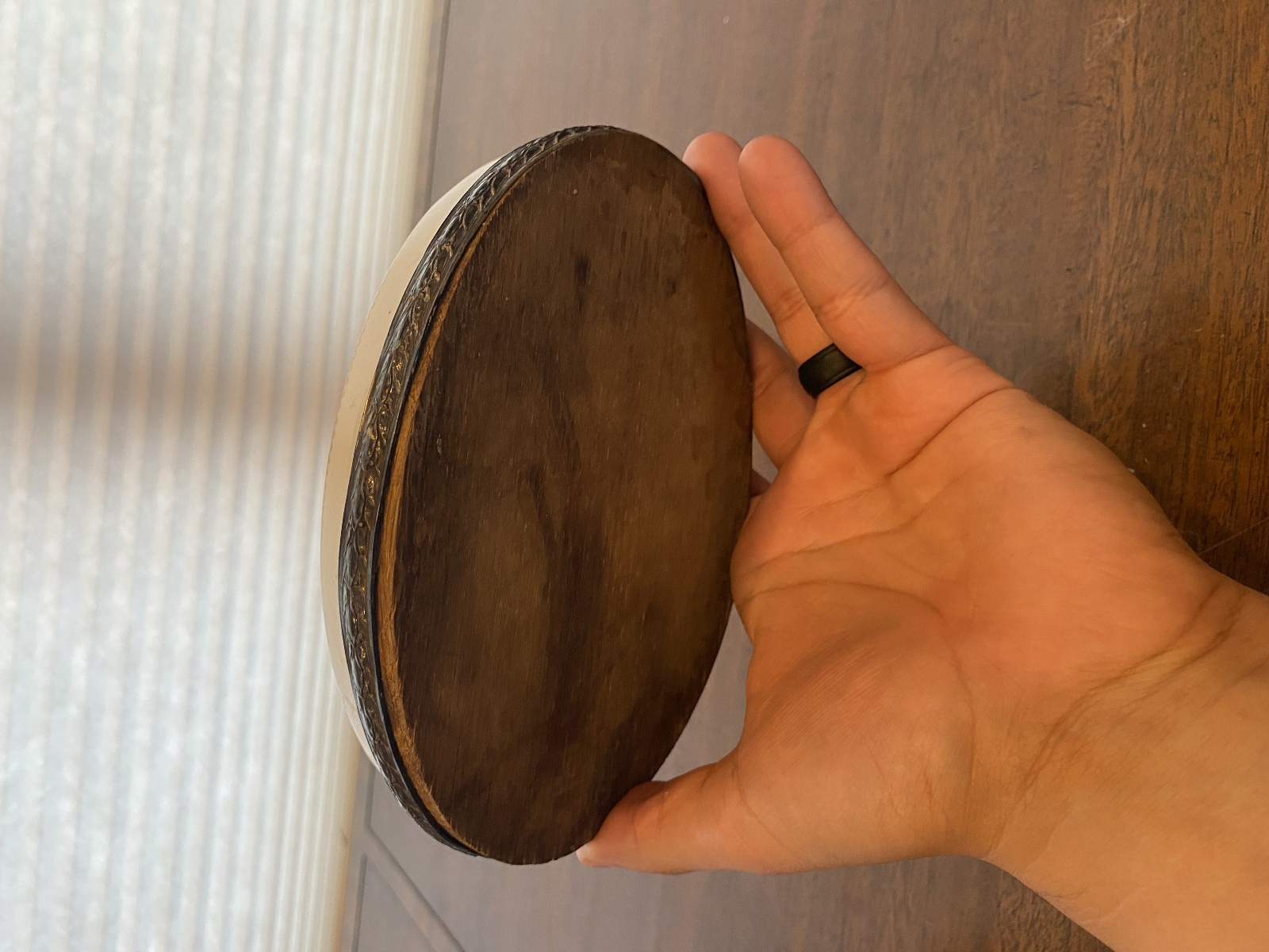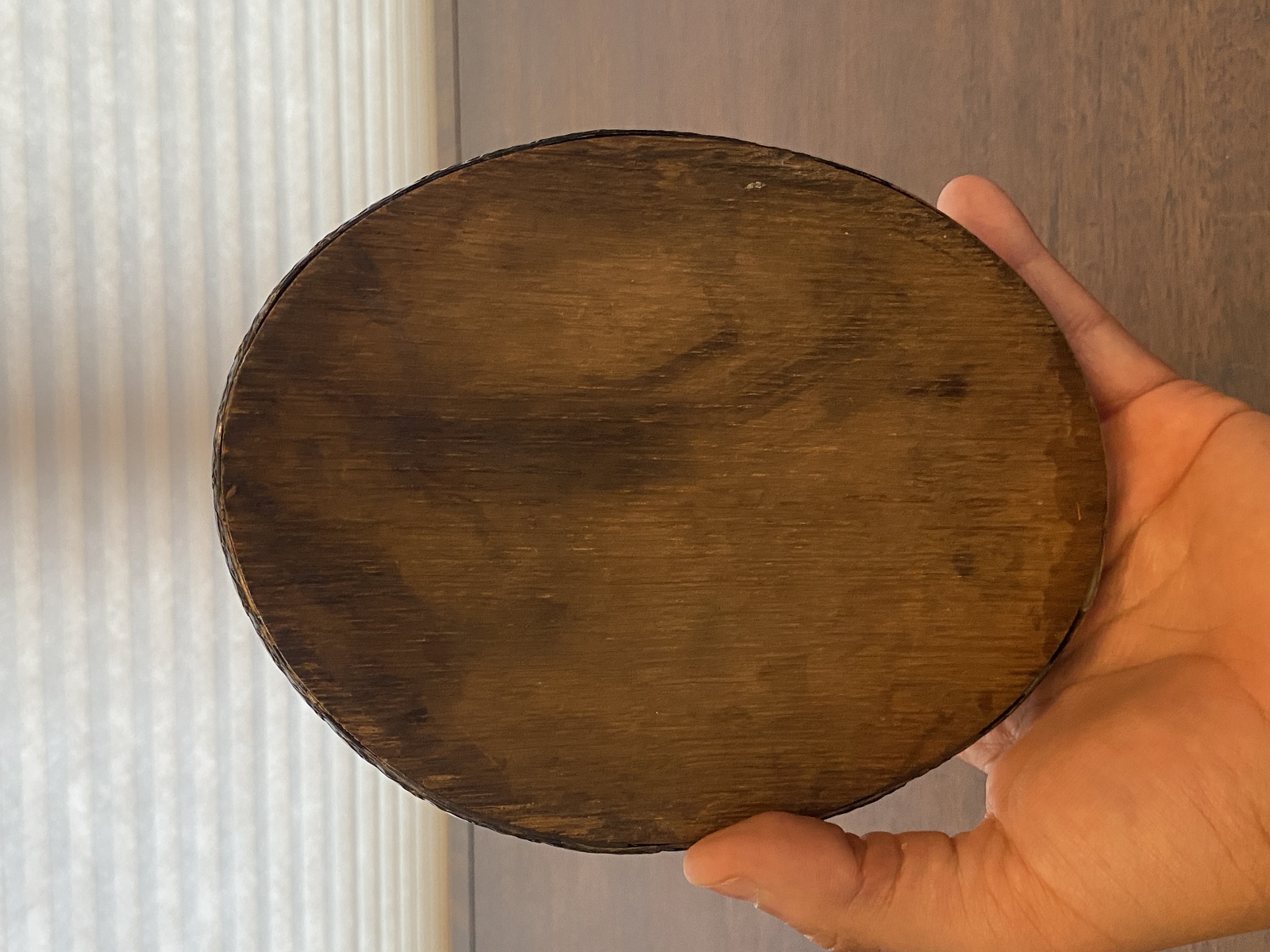 Good used condition (Has some wear marks from its age, and needs a wash, also looks like the wood on the bottom is coming out from time, but overall this piece is still in really good shape for its age). (Please refer back to the photos for condition and feel free to message me if you have any questions. Thank you)! Approximate measurements 7"L x 5.5"W x 3"H. 100% of the proceeds go to the registered non profit Cards of Love Inc. and with your purchase you are helping raise money to fund scholarships for at risk youth. Thank you!