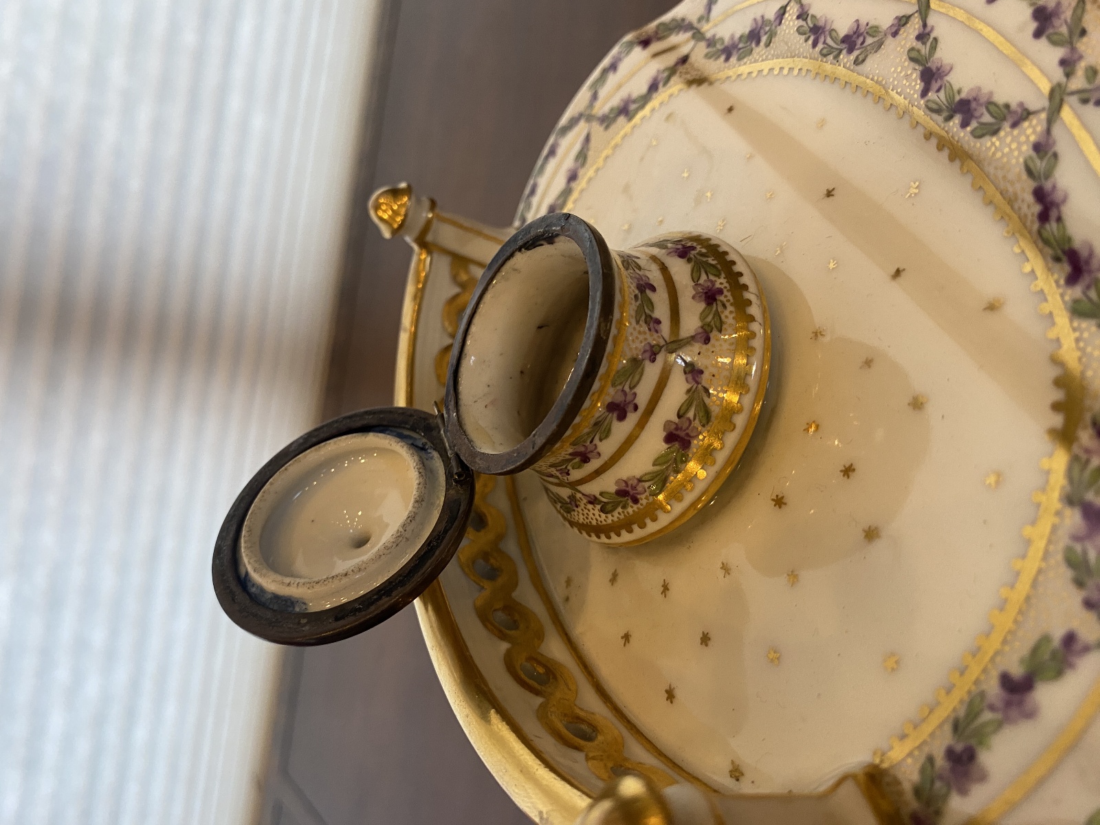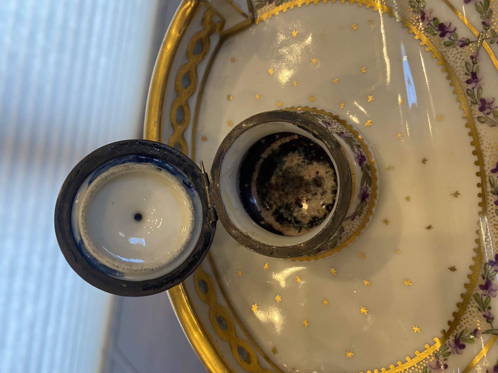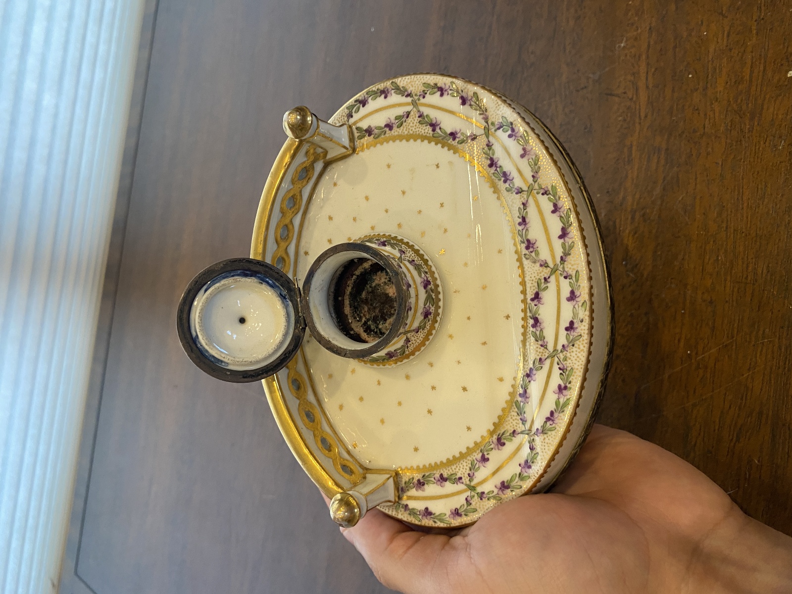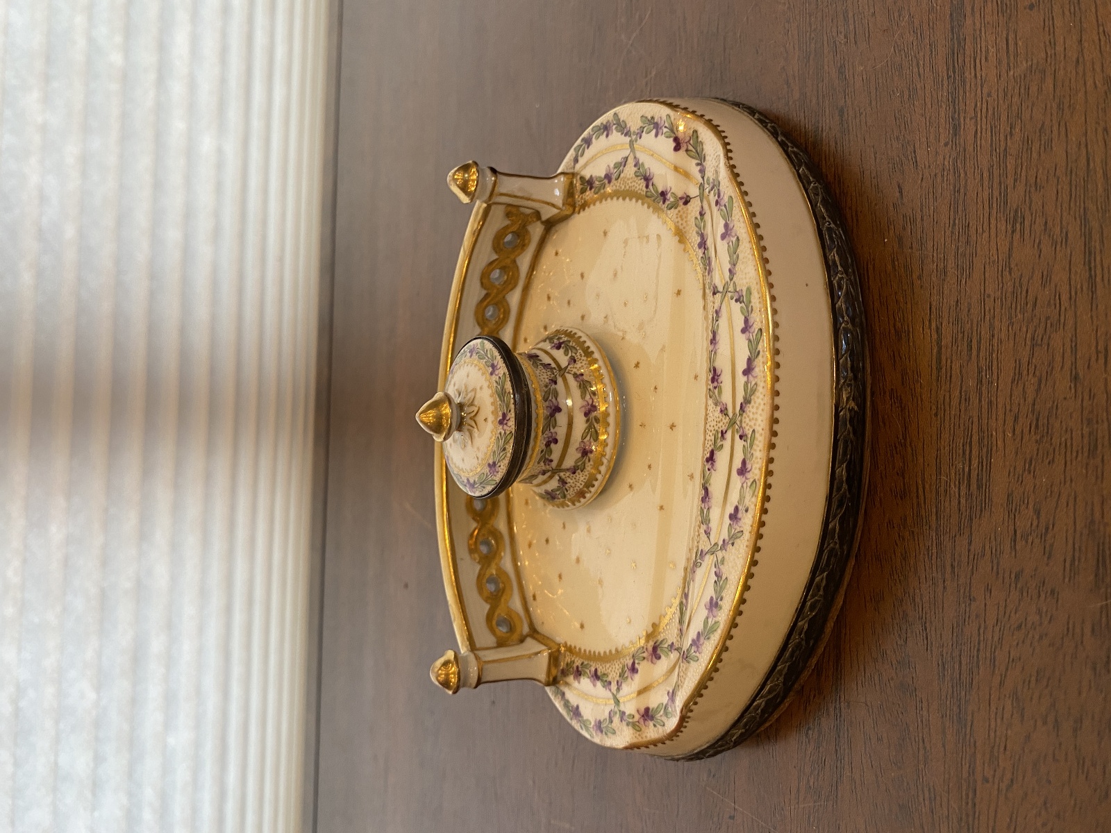 ANTIQUE Porcelain Floral HANDPAINTED Inkstand W/Gold Trim 7"L