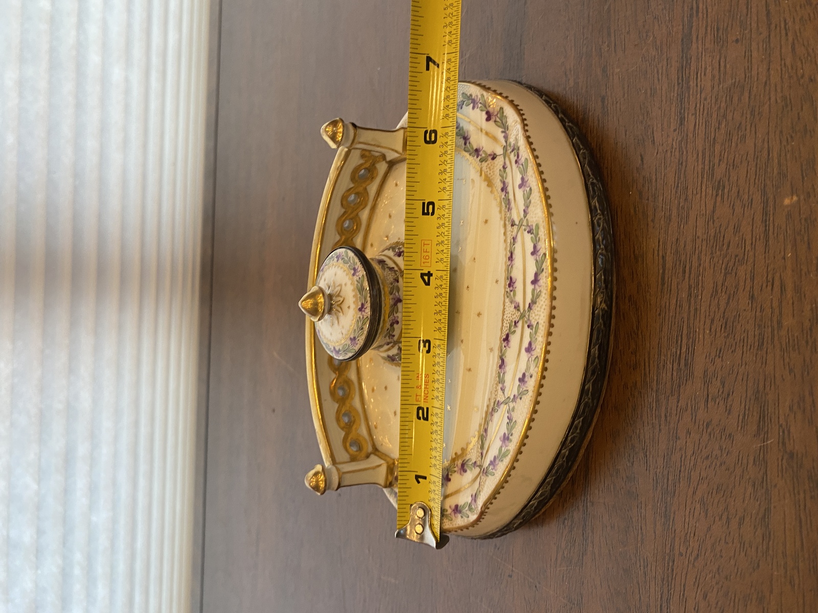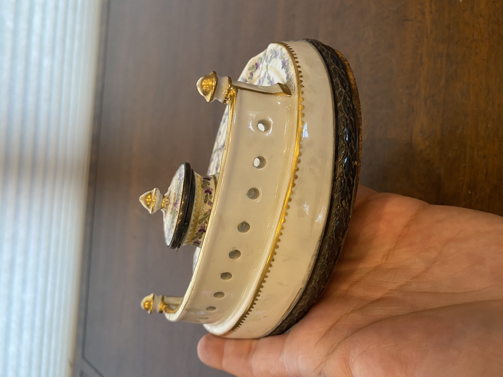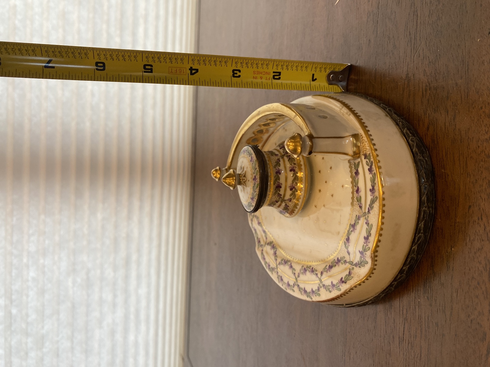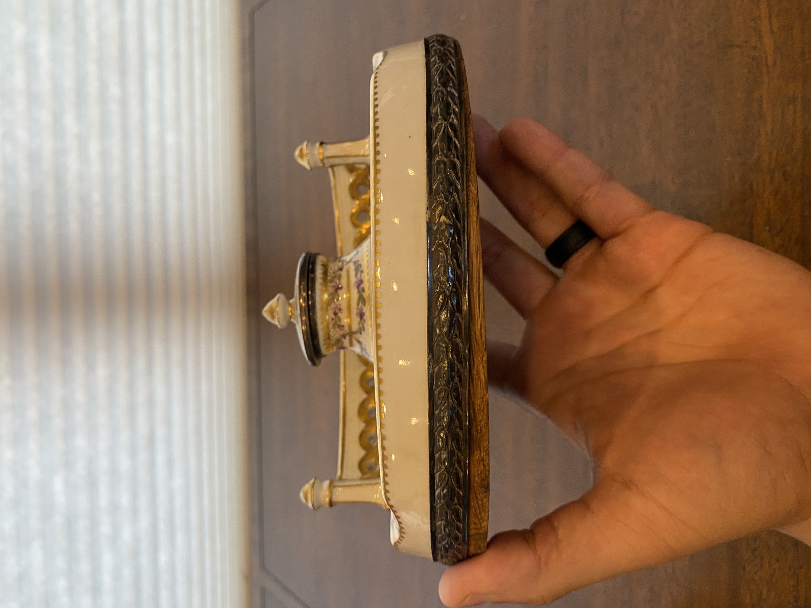 ANTIQUE Porcelain Floral HANDPAINTED Inkstand W/Gold Trim 7"L