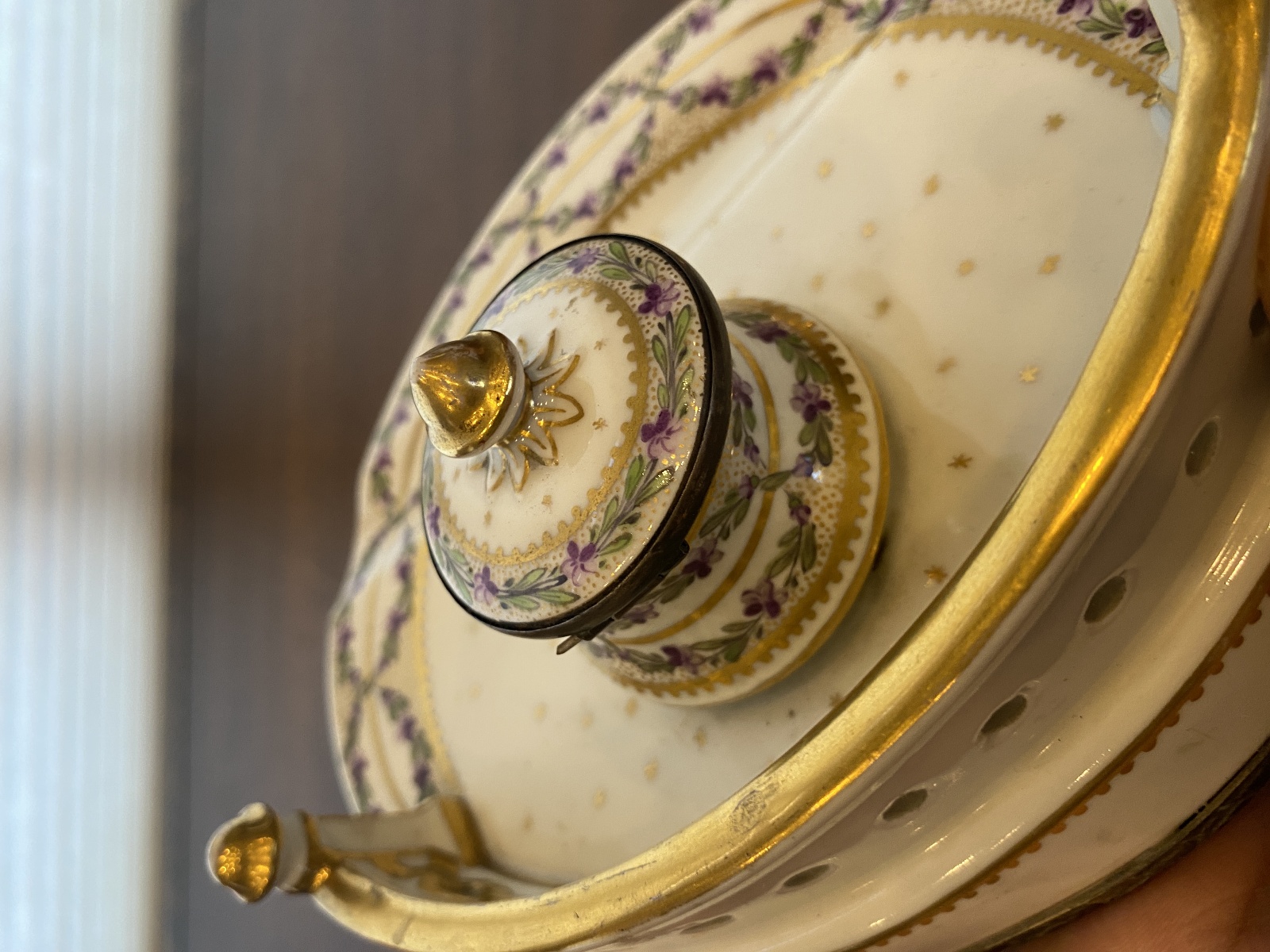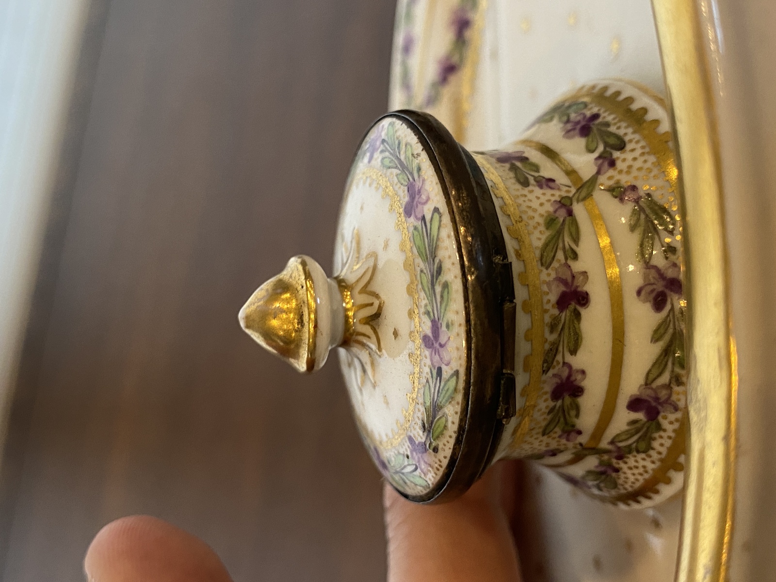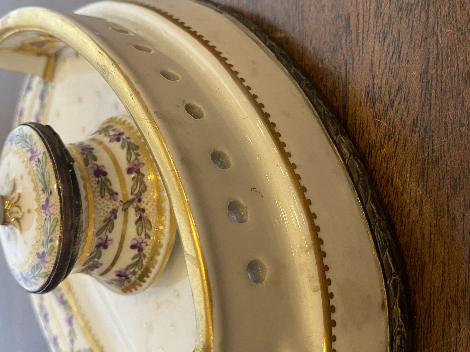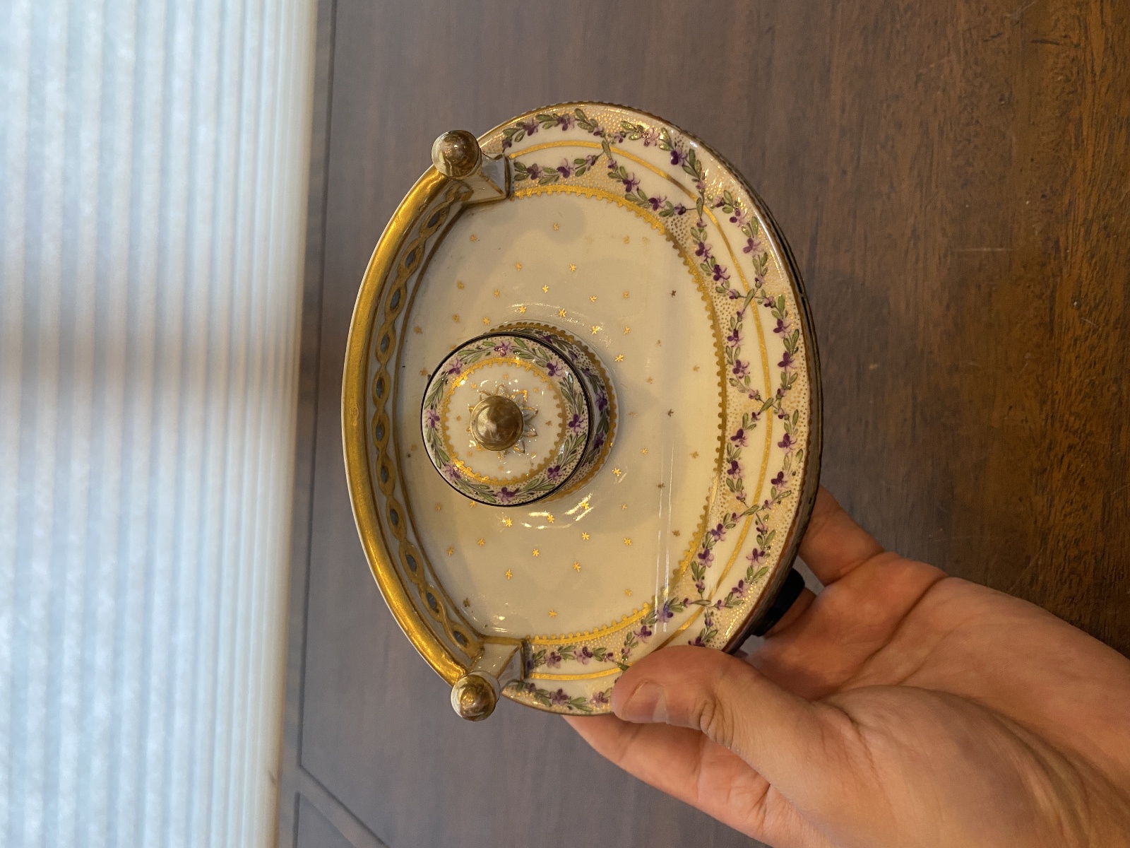 ANTIQUE Porcelain Floral HANDPAINTED Inkstand W/Gold Trim 7"L