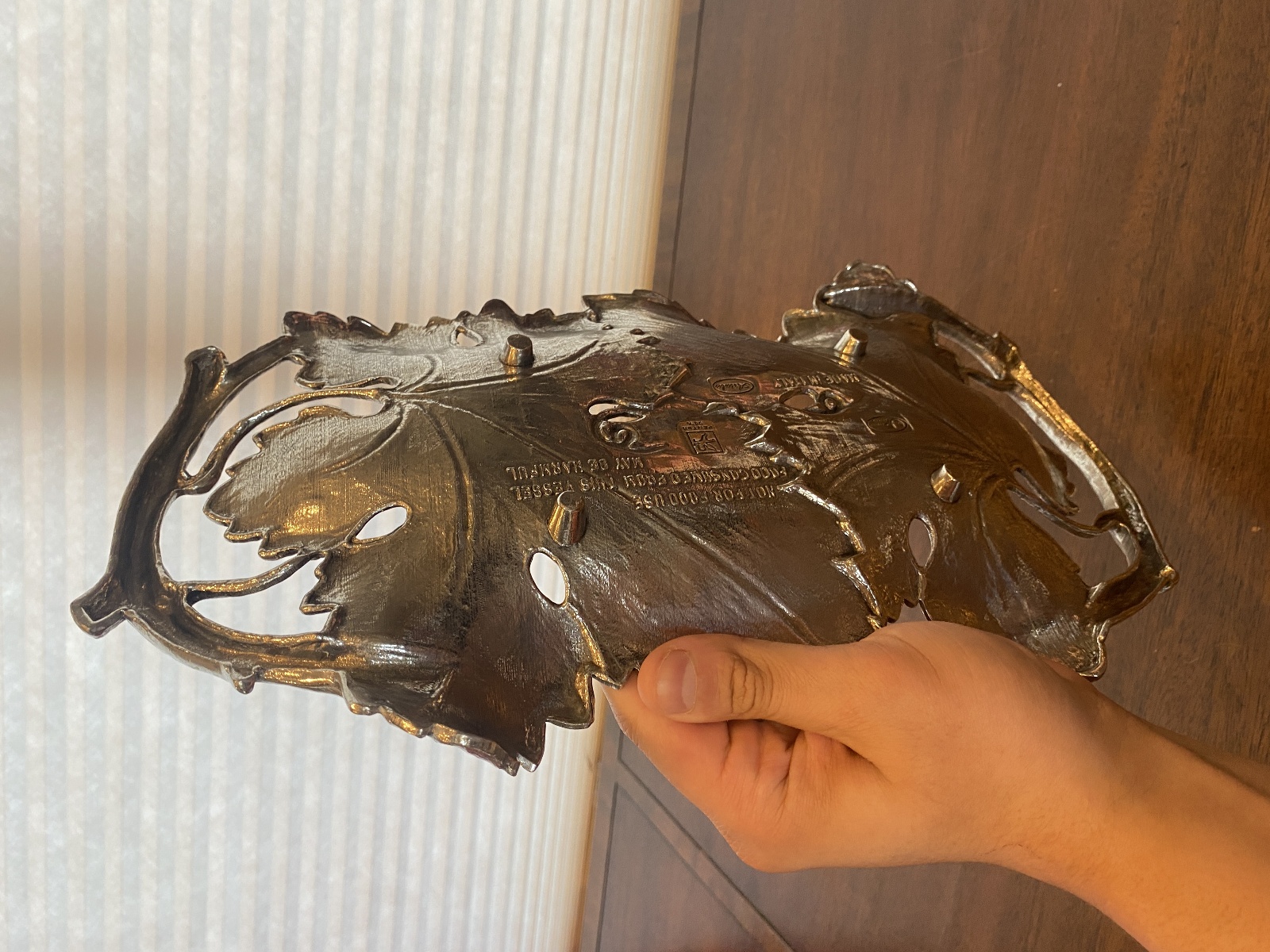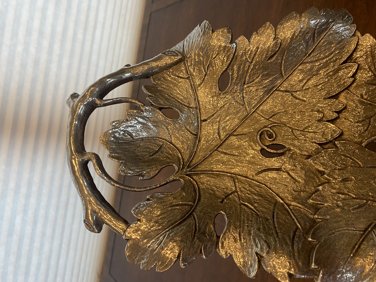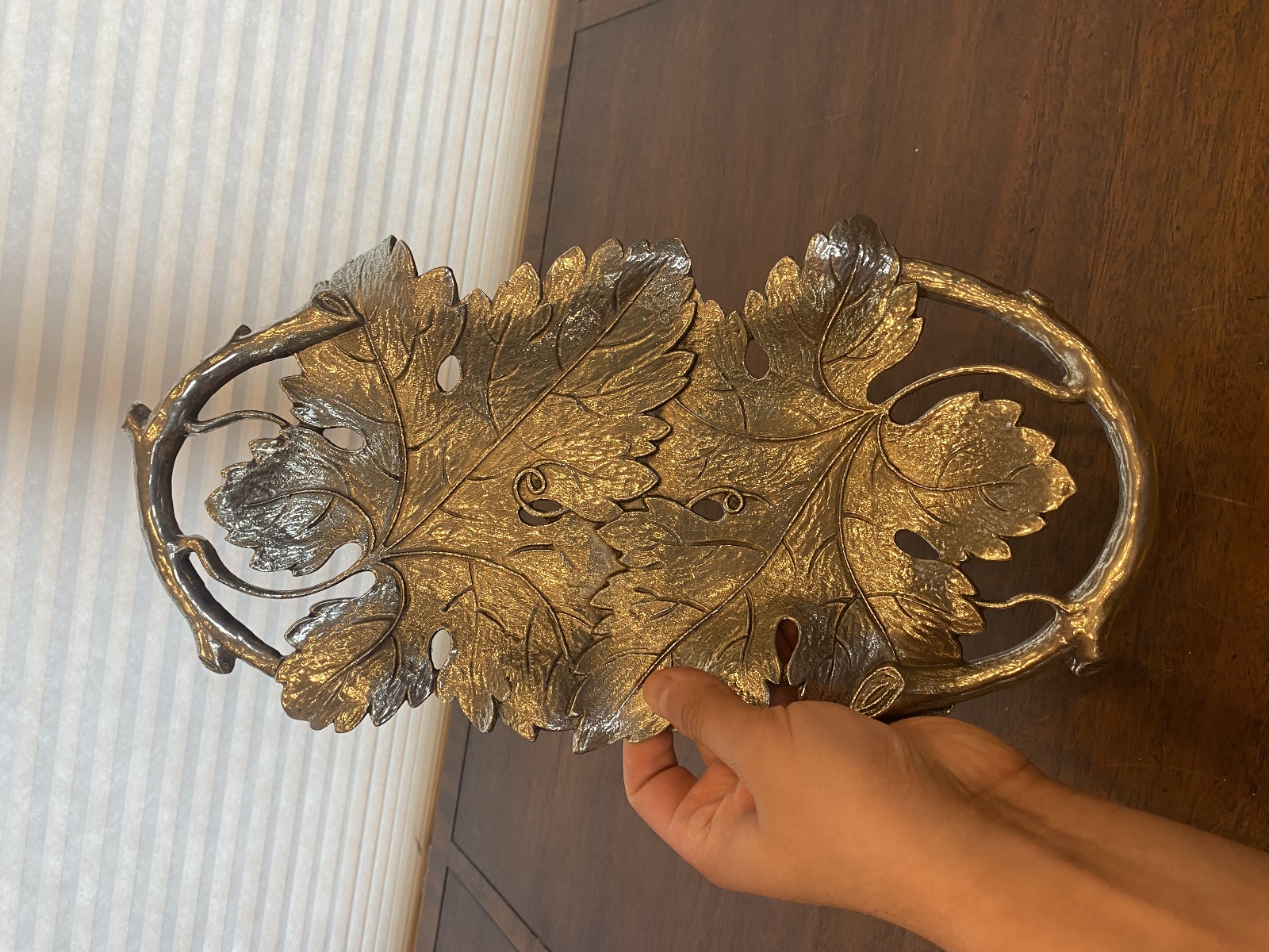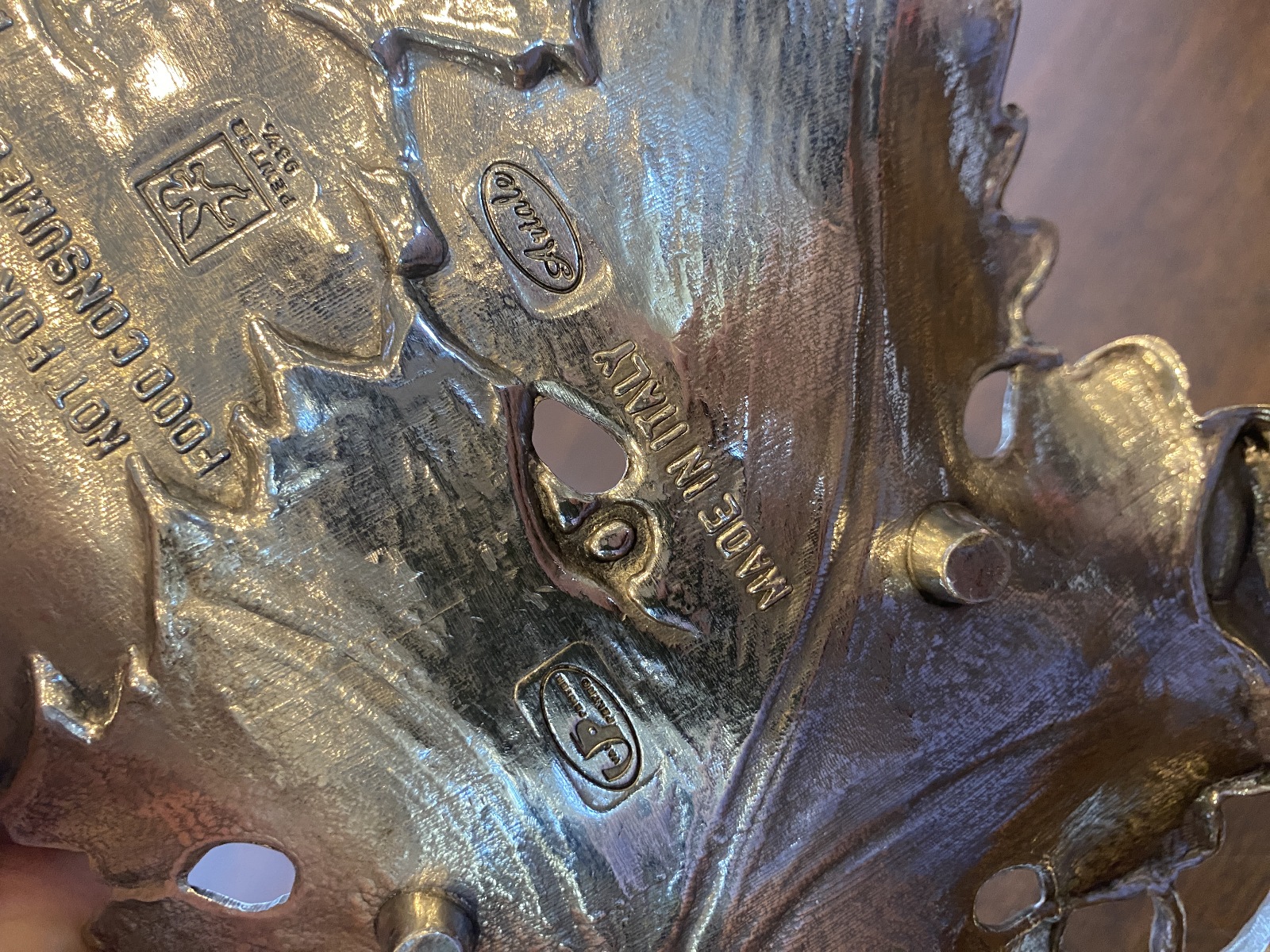 Valpeltro Pewter Leaf Design Serving Platter 15"L MADE IN ITALY