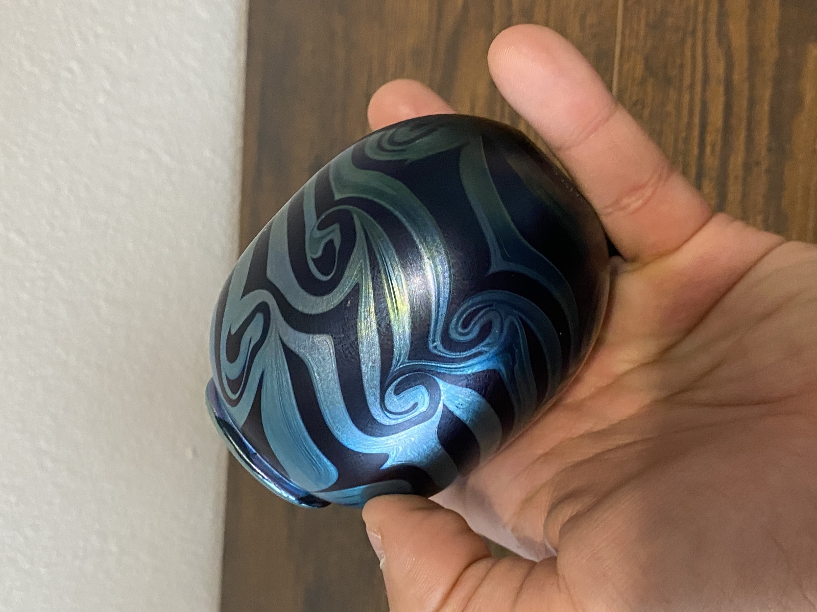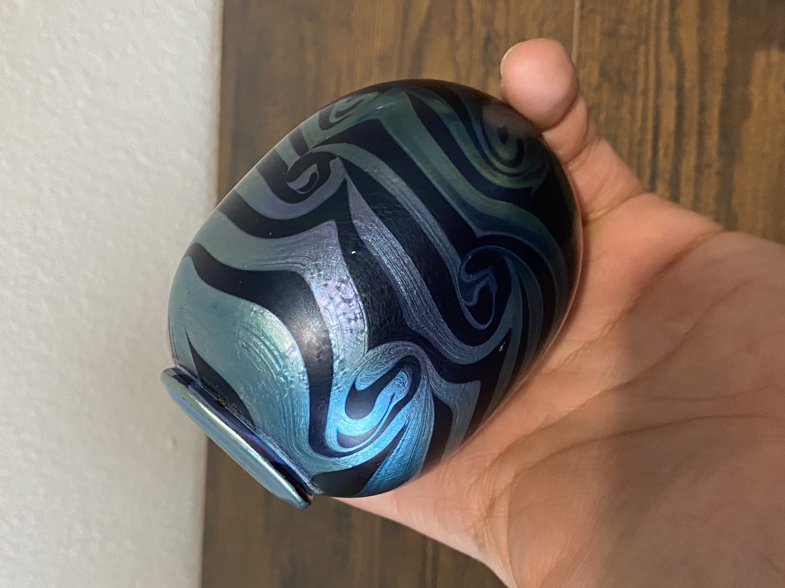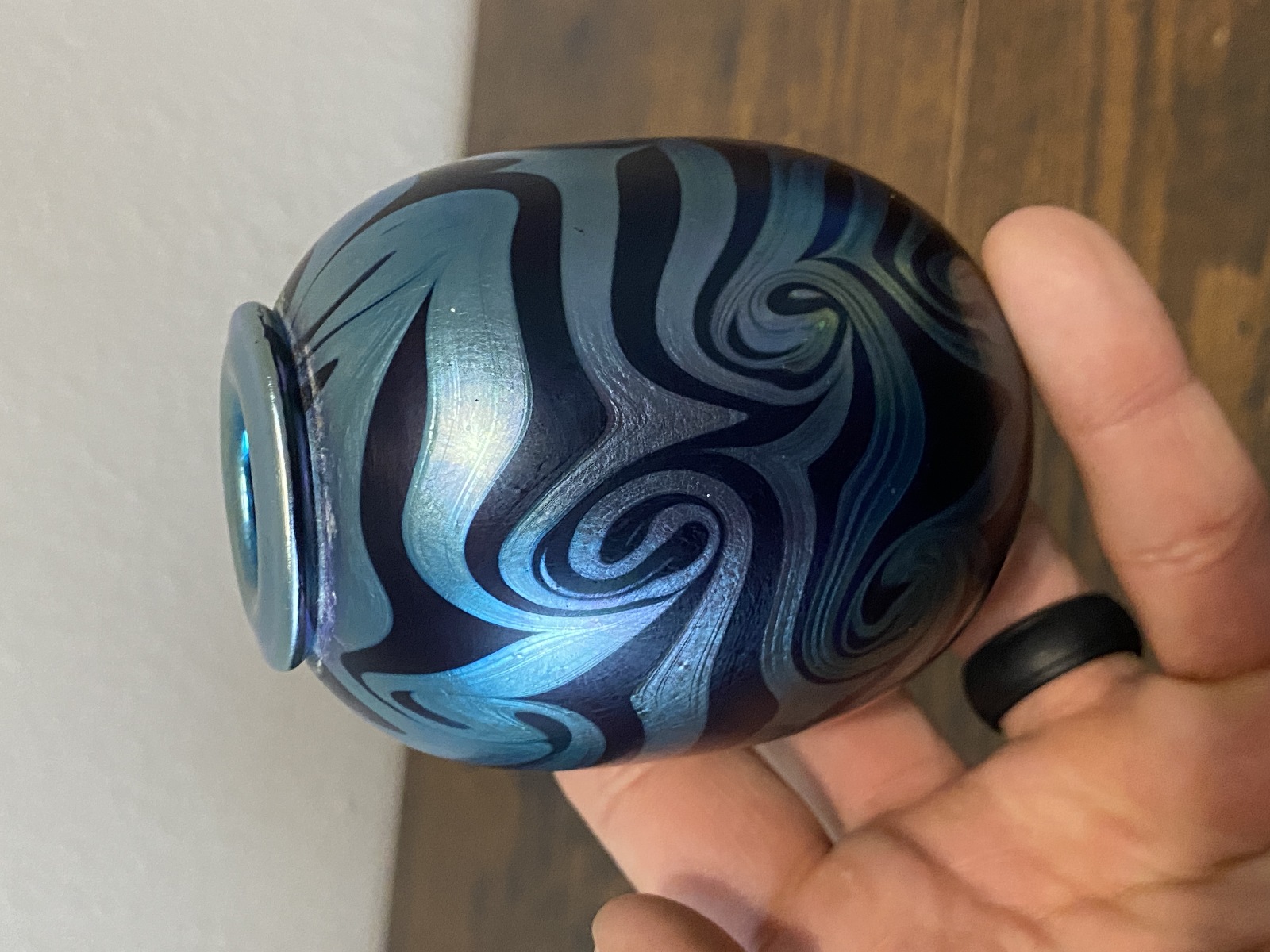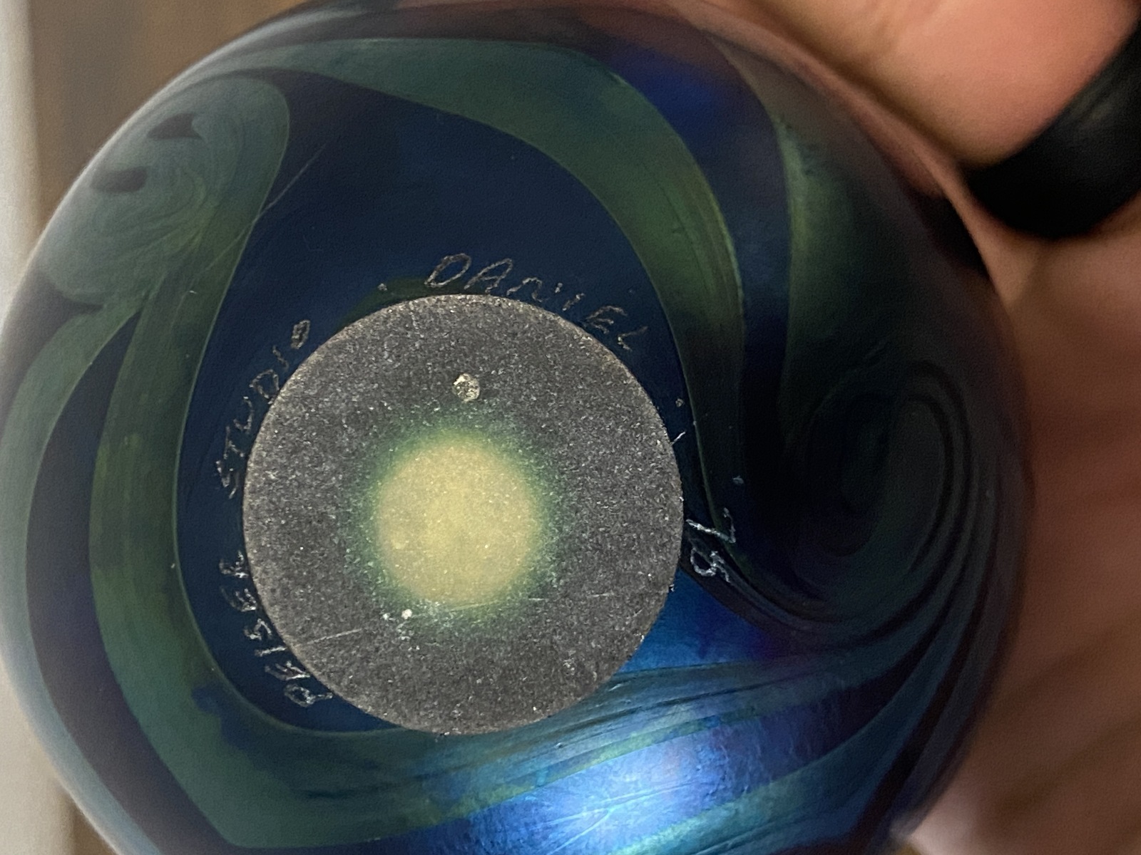 Small VTG PEISER STUDIO Iridescent Swirl Art Glass Vase 3 5/8"H SIGNED DANIEL