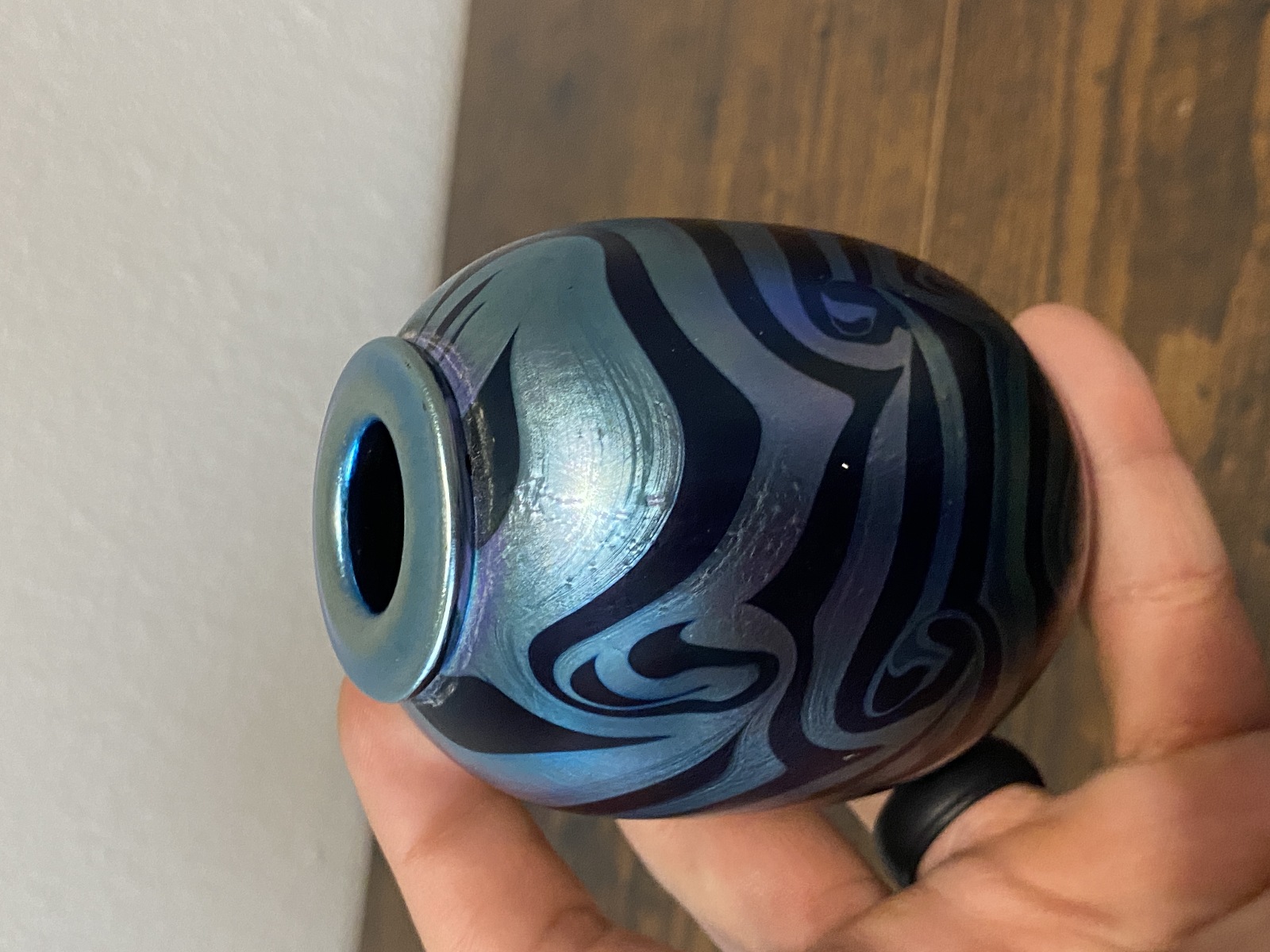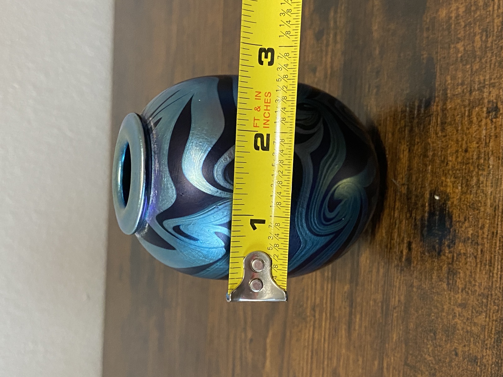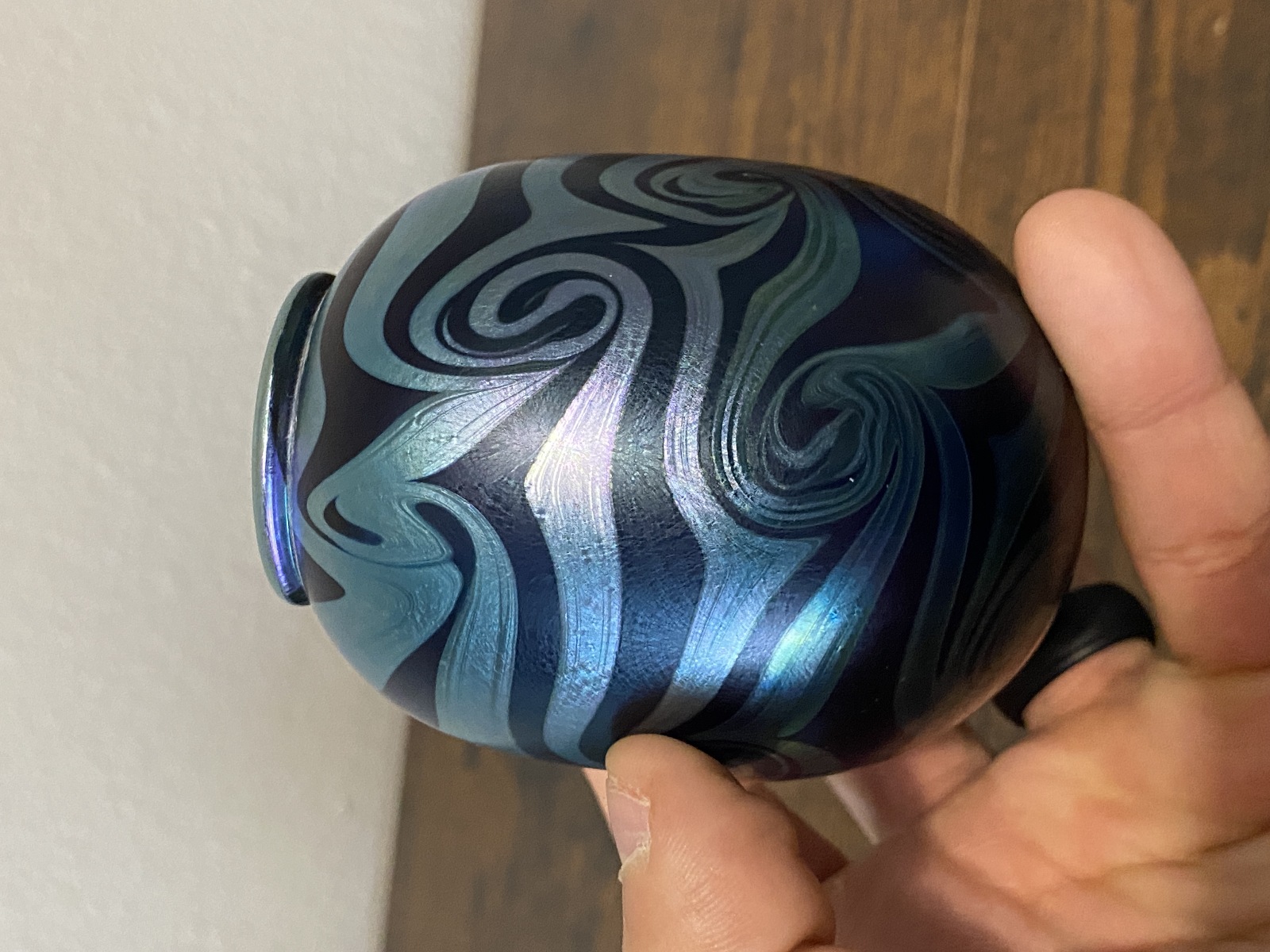 Small VTG PEISER STUDIO Iridescent Swirl Art Glass Vase 3 5/8"H SIGNED DANIEL