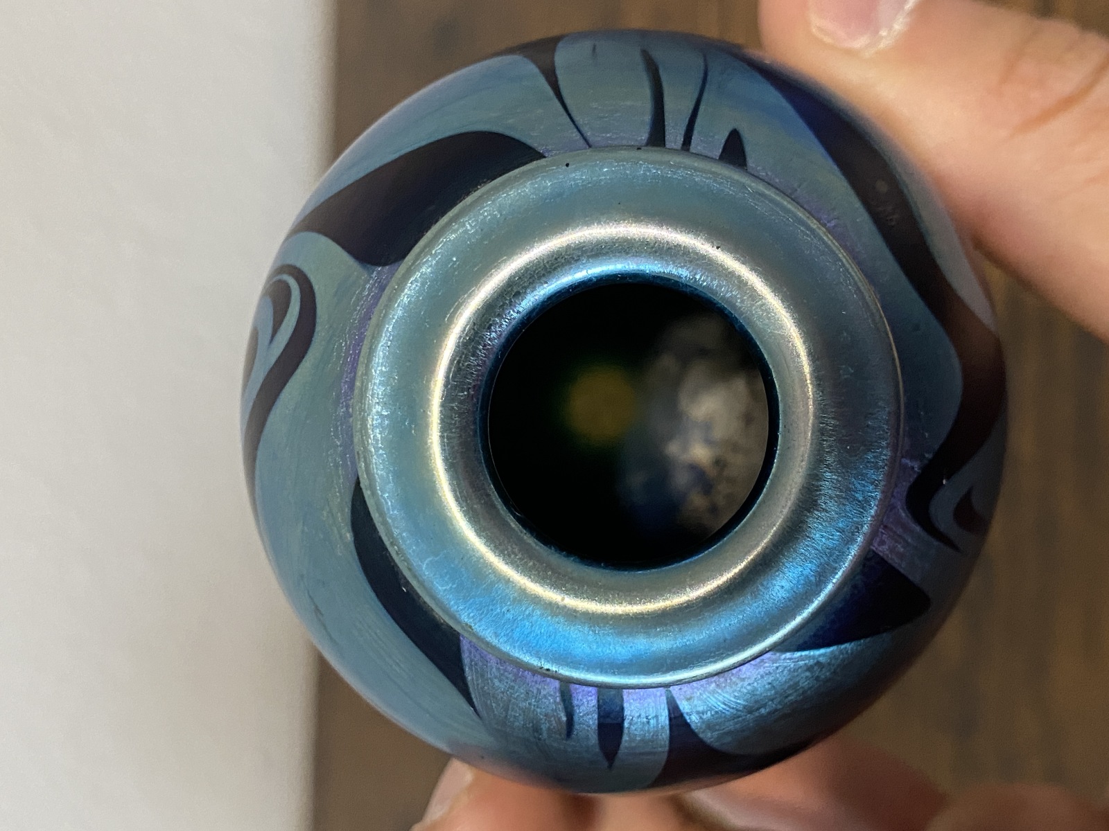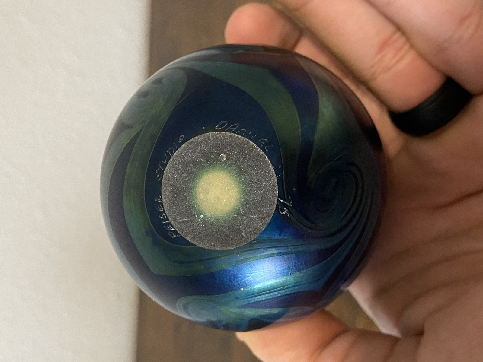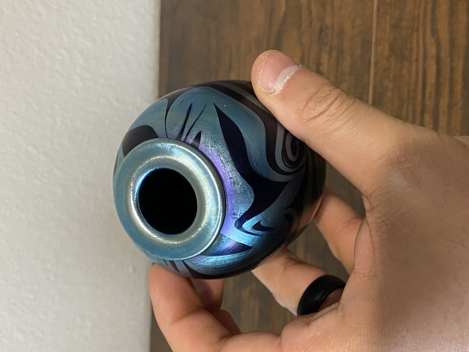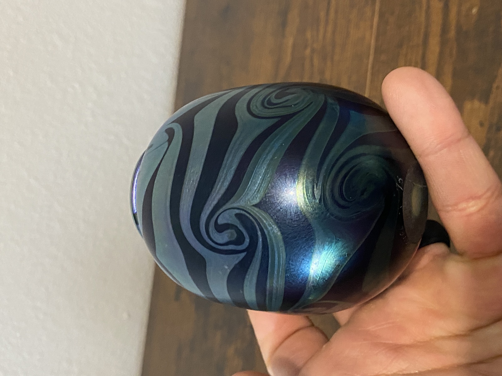 Small VTG PEISER STUDIO Iridescent Swirl Art Glass Vase 3 5/8"H SIGNED DANIEL