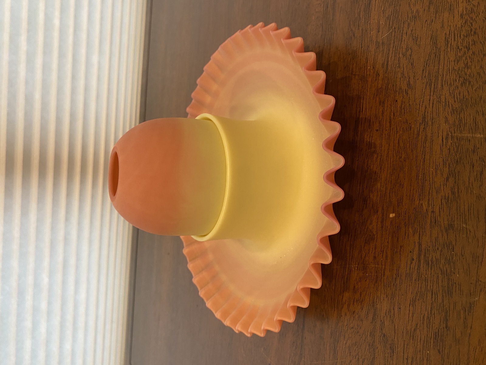 VTG UV REACTIVE Yellow/Peach Fenton Burmese Wide Fairy Lamp