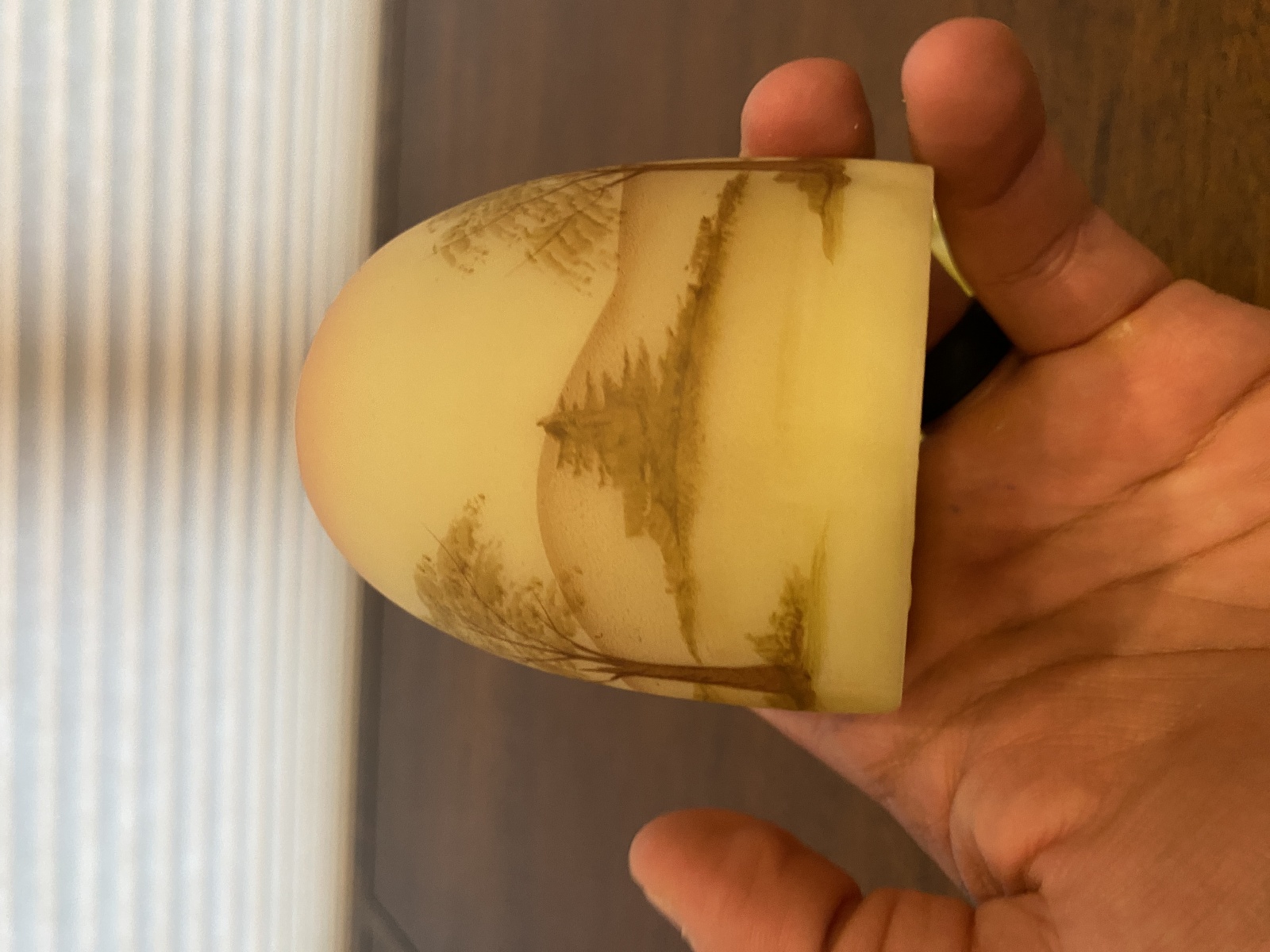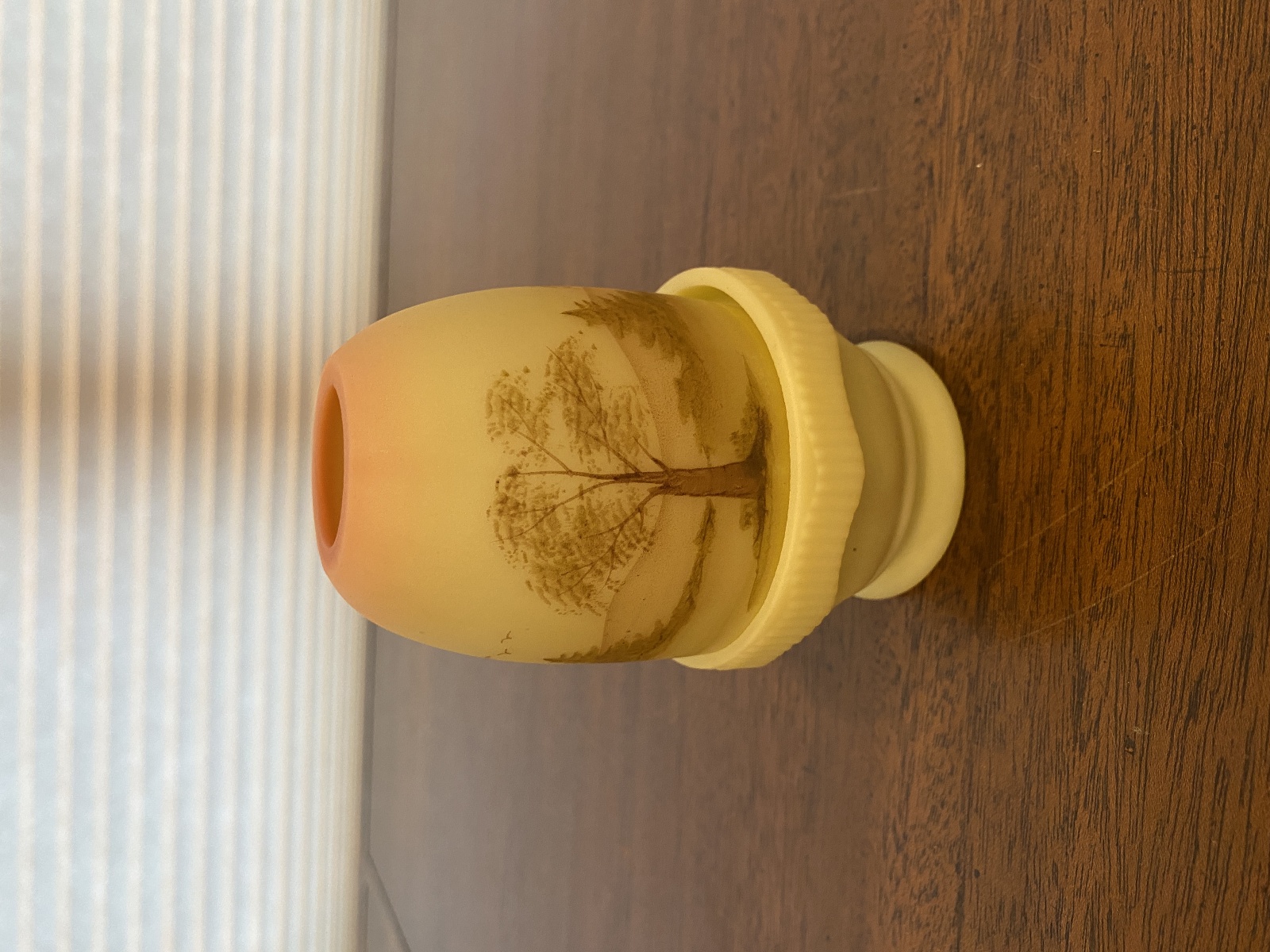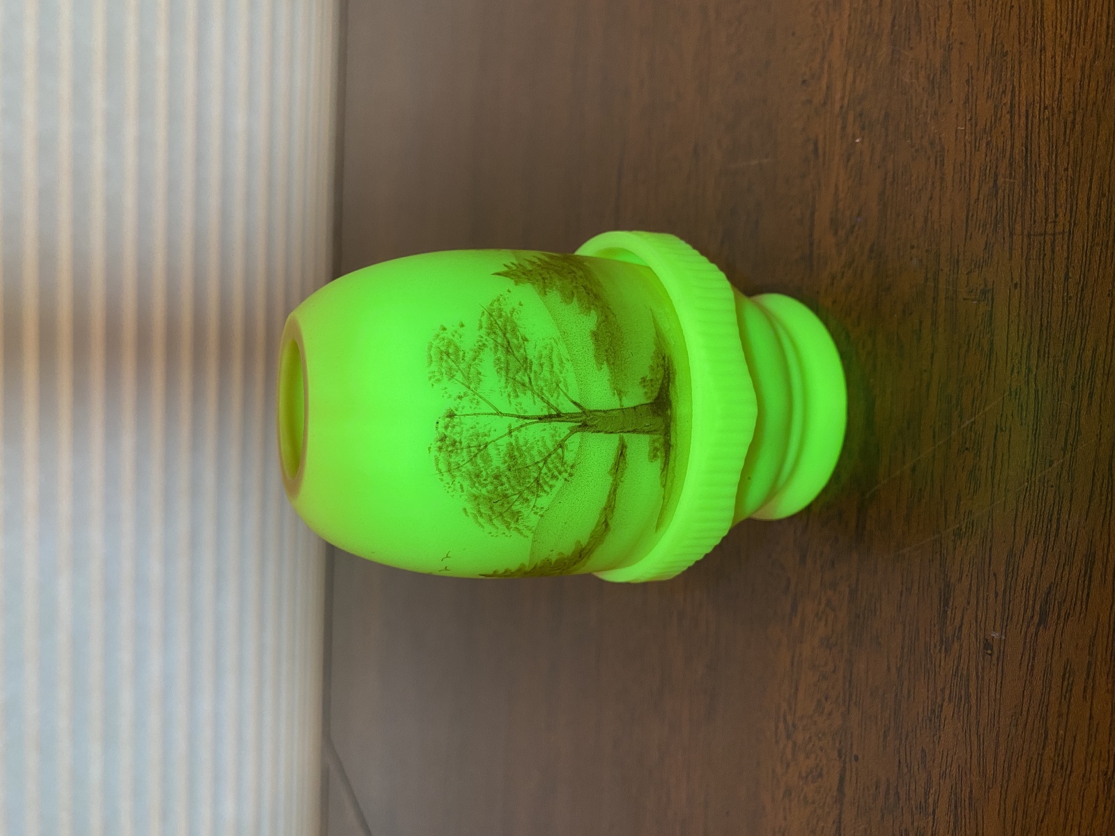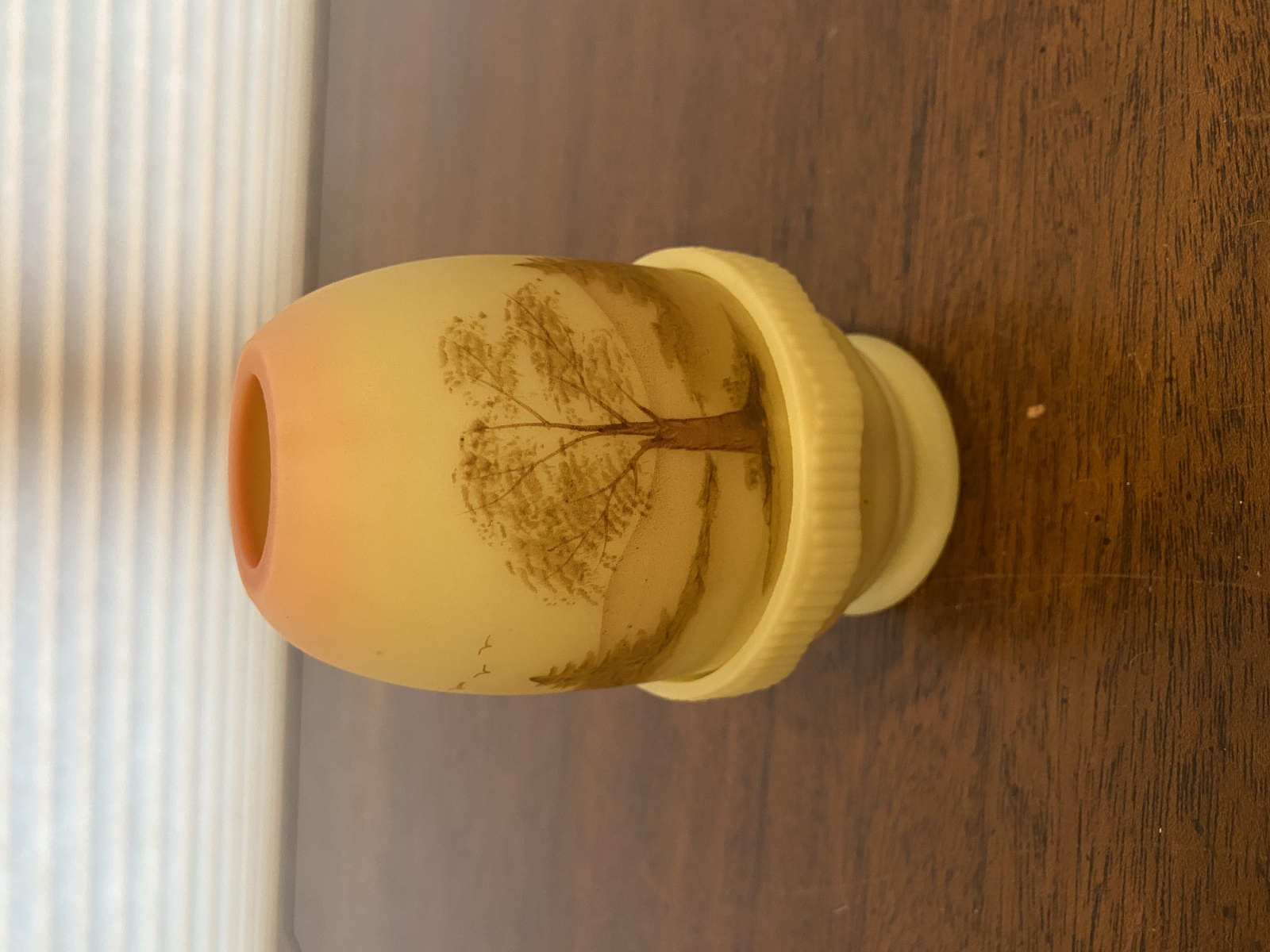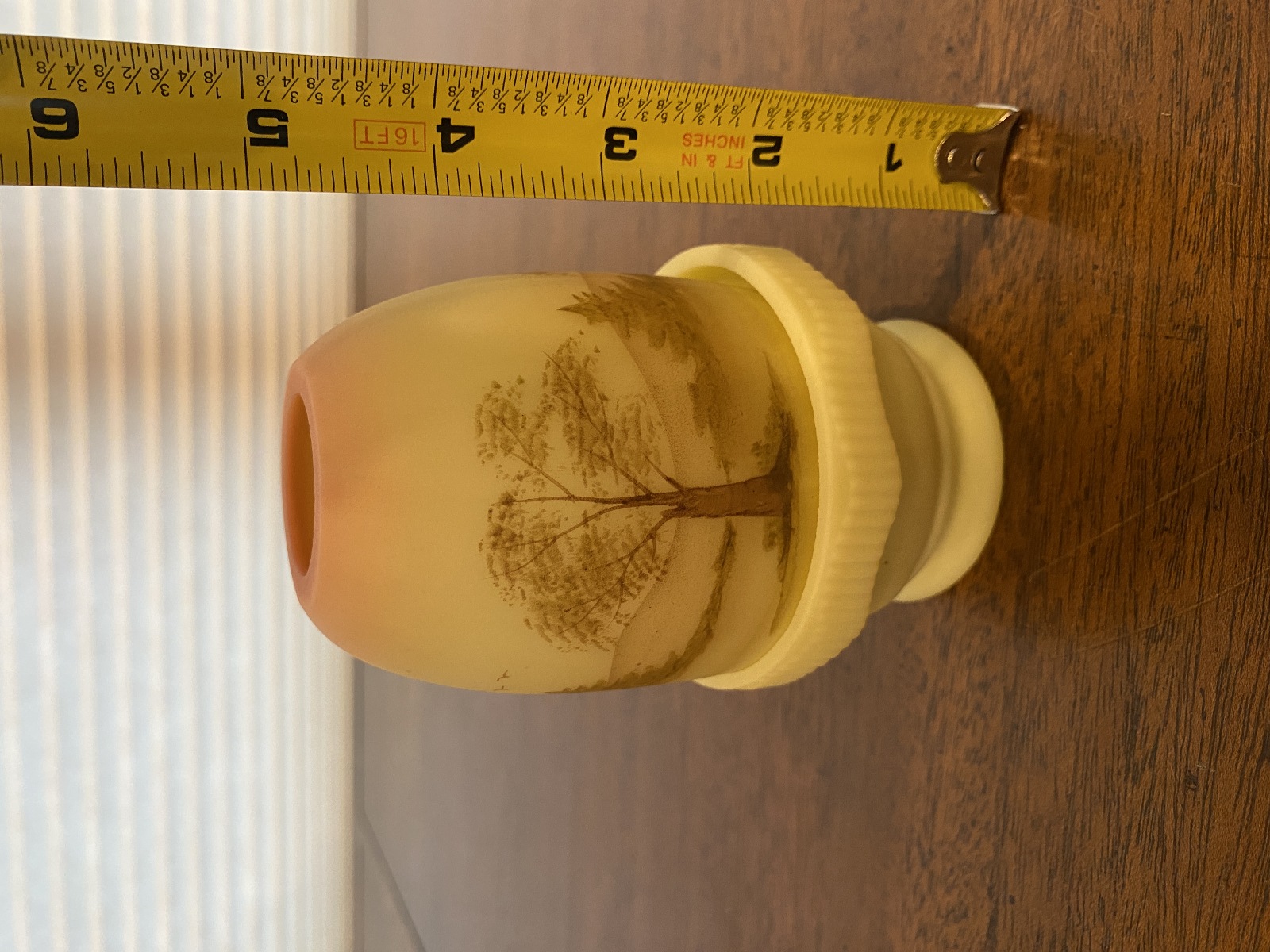 VTG UV REACTIVE Fenton Burmese PAINTED/SIGNED Nature Scene Fairy Lamp 4.75"H