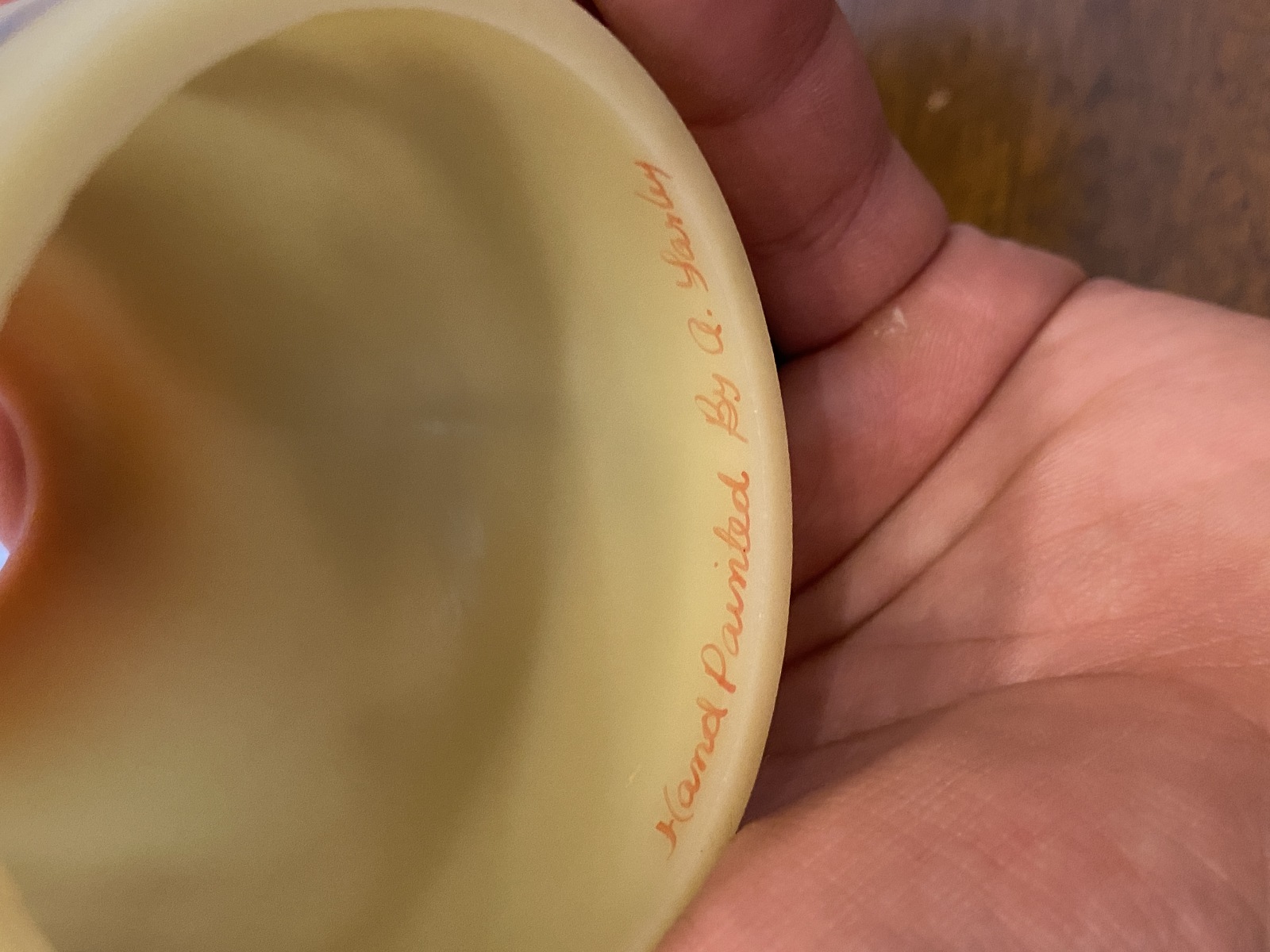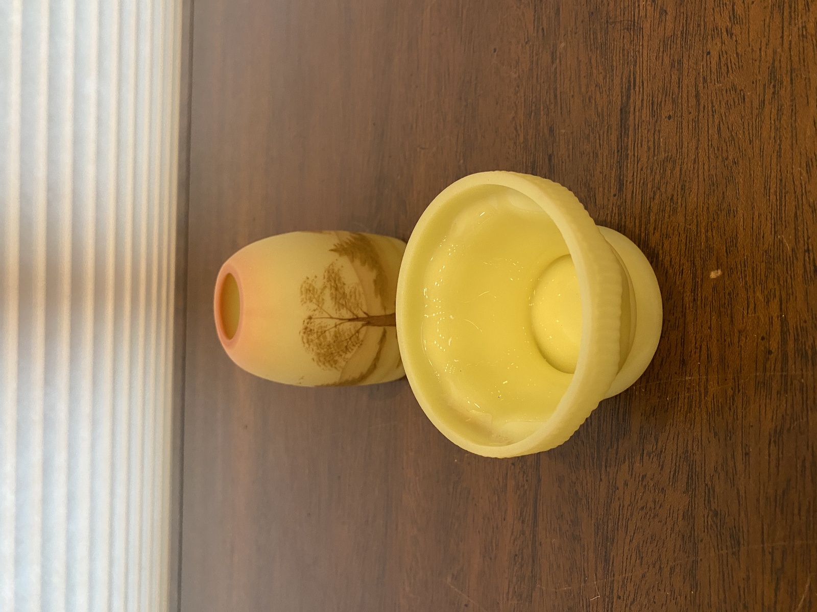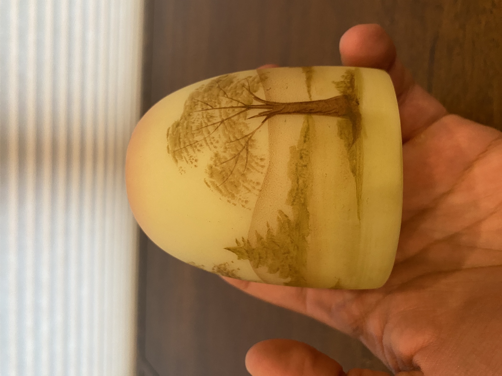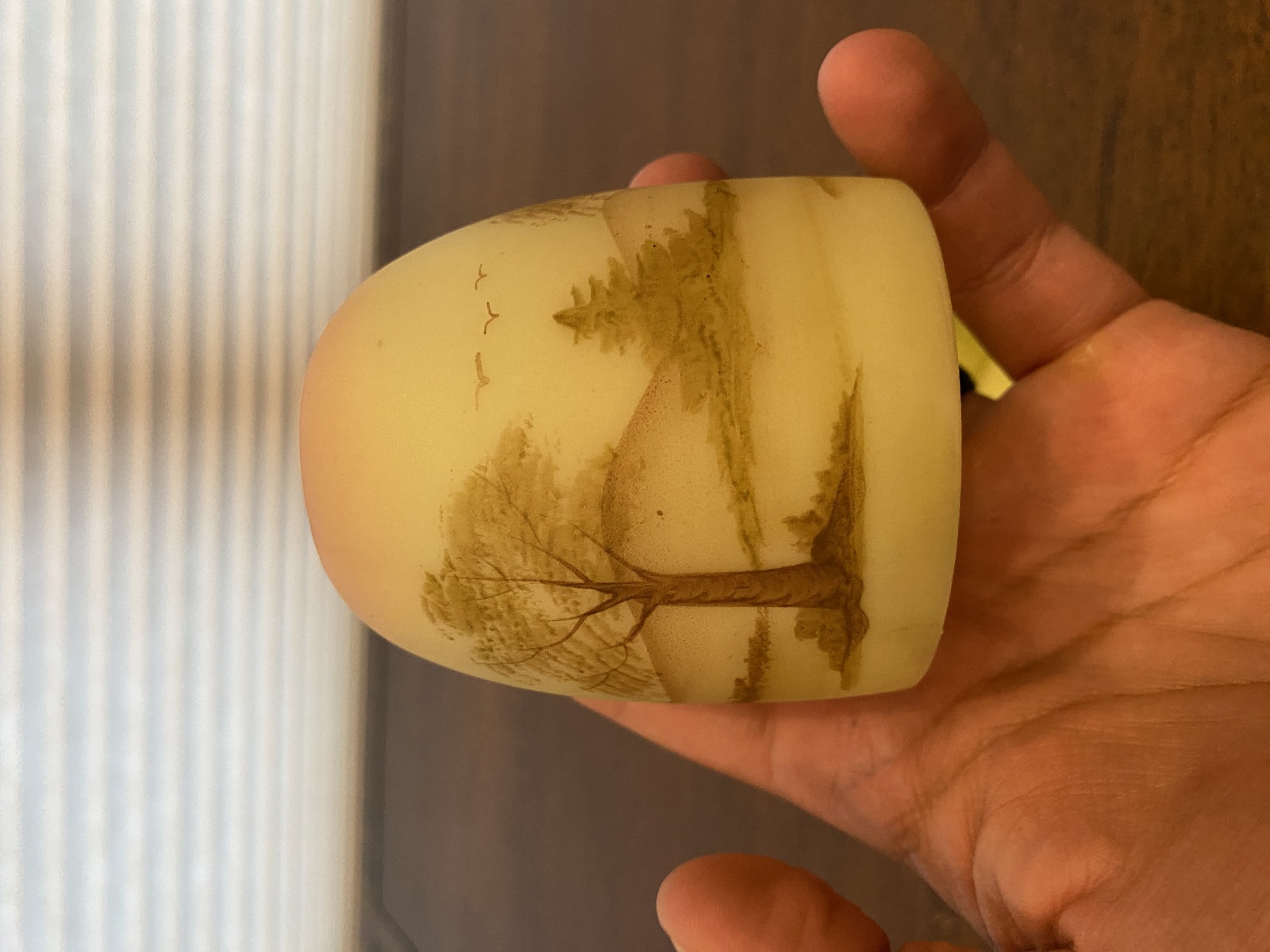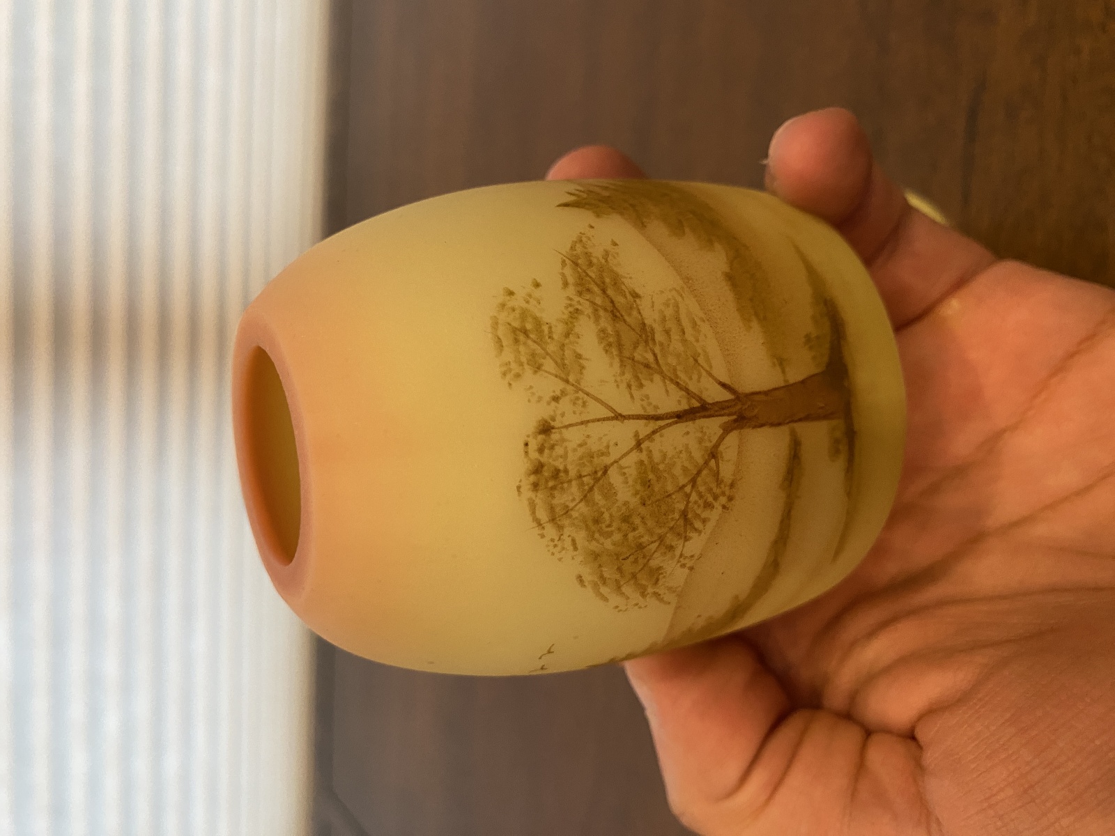 VTG UV REACTIVE Fenton Burmese PAINTED/SIGNED Nature Scene Fairy Lamp 4.75"H