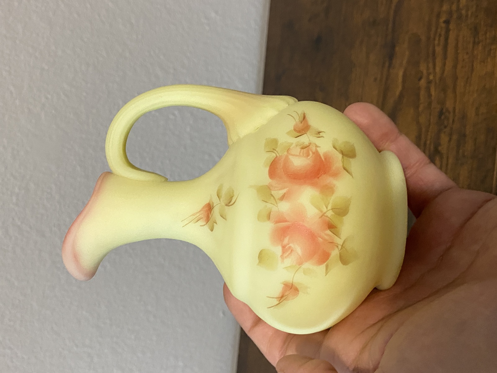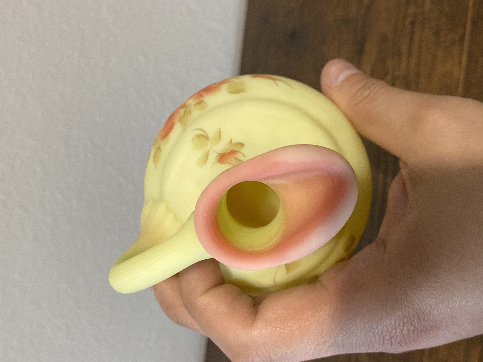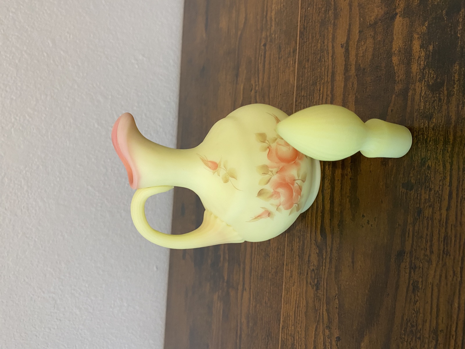 VTG UV REACTIVE FENTON Burmese Floral PAINTED Cruet W/Stopper SIGNED 7"H
