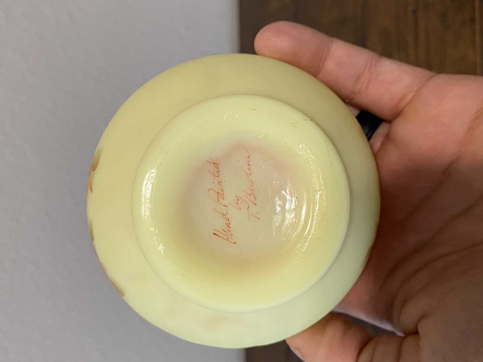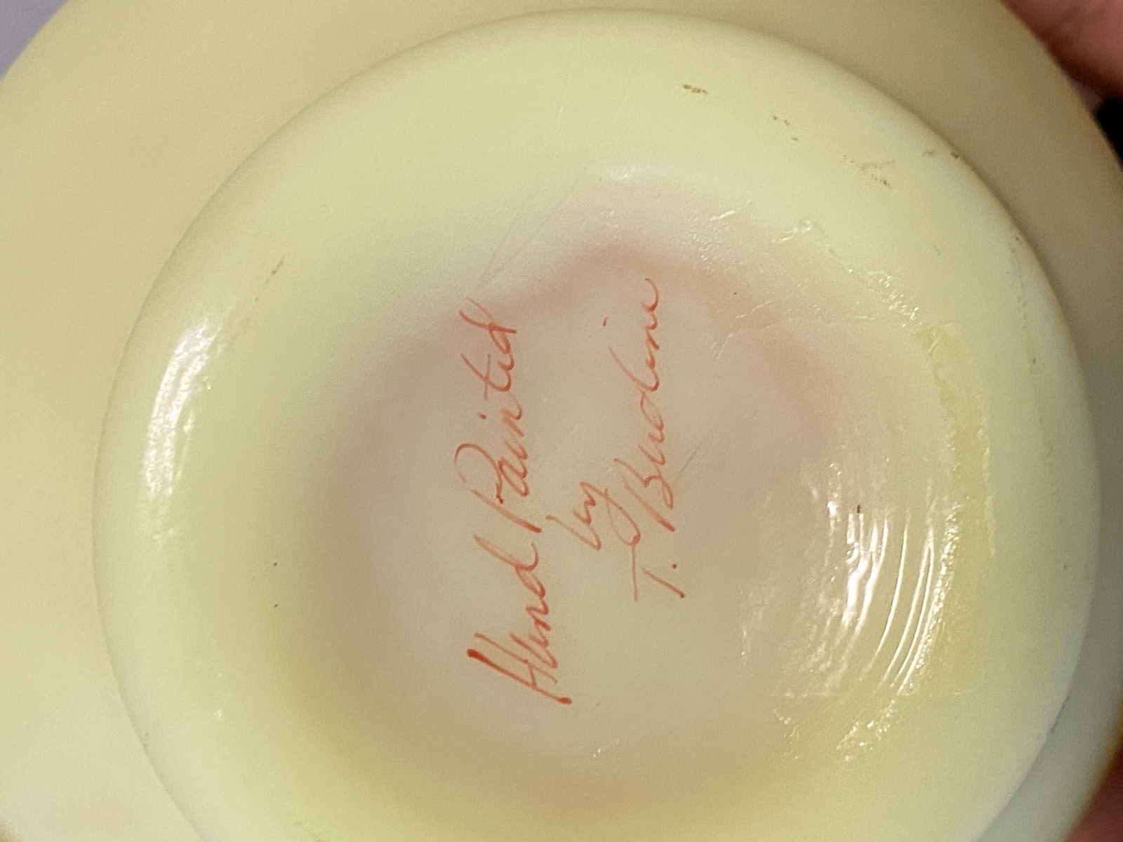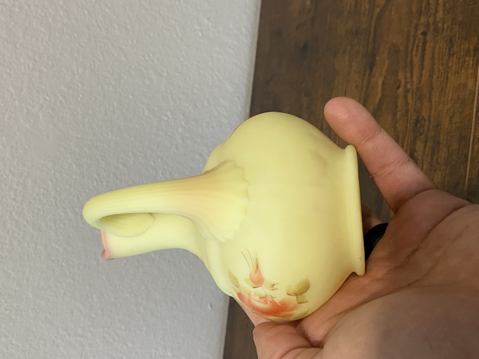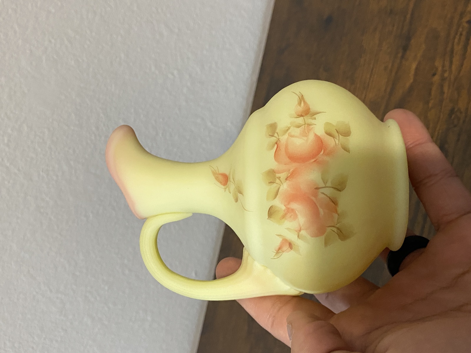 VTG UV REACTIVE FENTON Burmese Floral PAINTED Cruet W/Stopper SIGNED 7"H