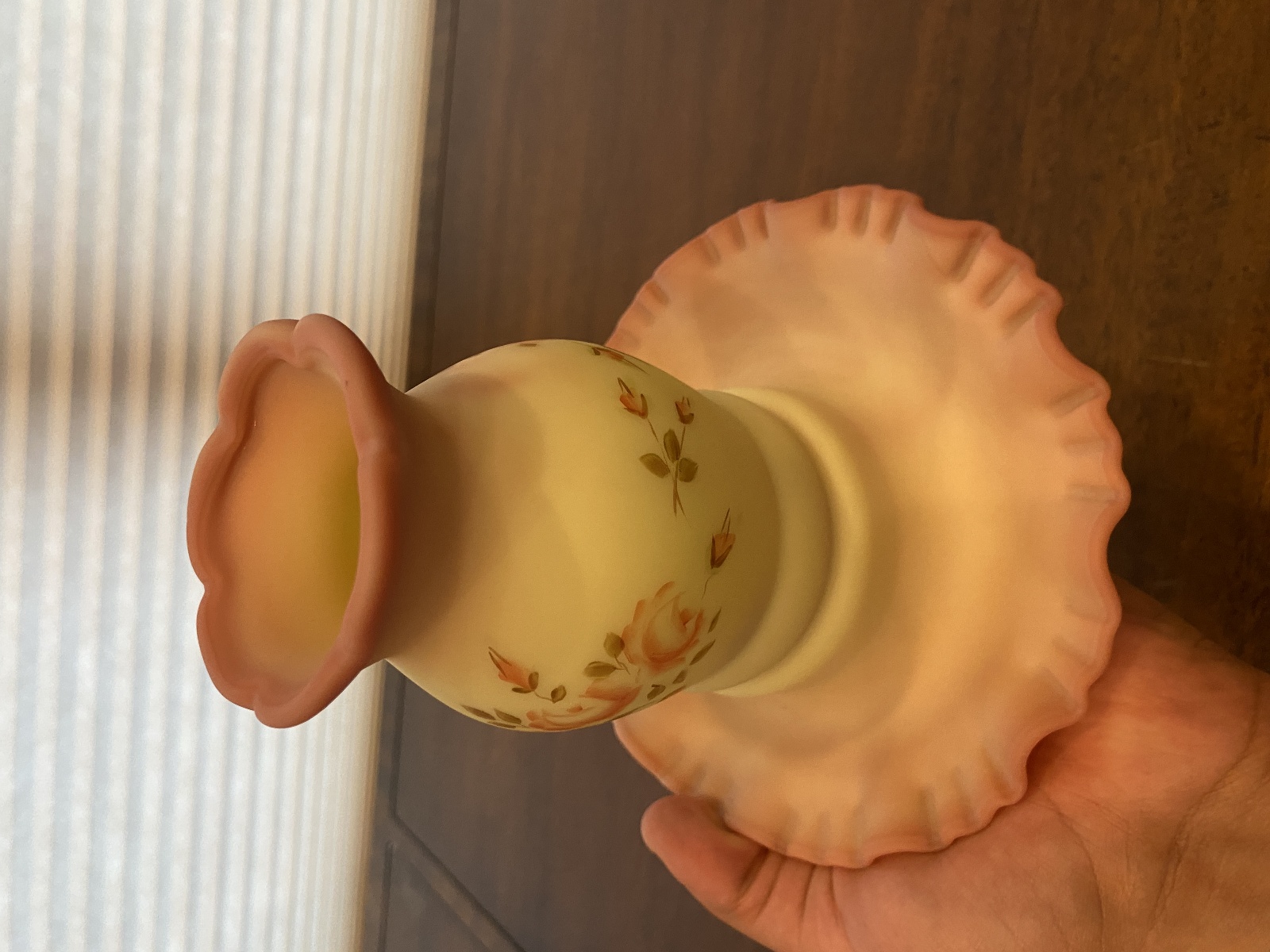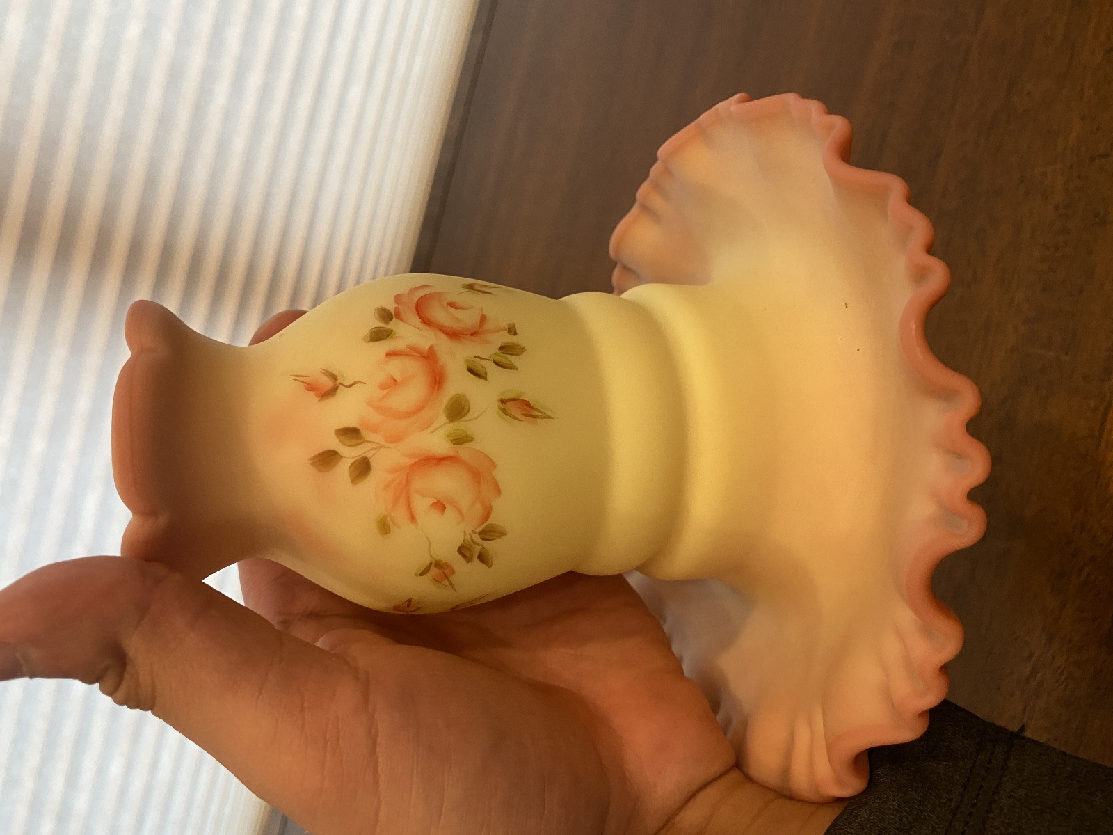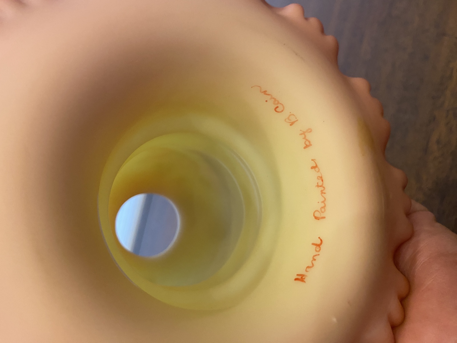 VTG UV REACTIVE FENTON Burmese"ROSES" Fairy Lamp HANDPAINTED & SIGNED 6"H