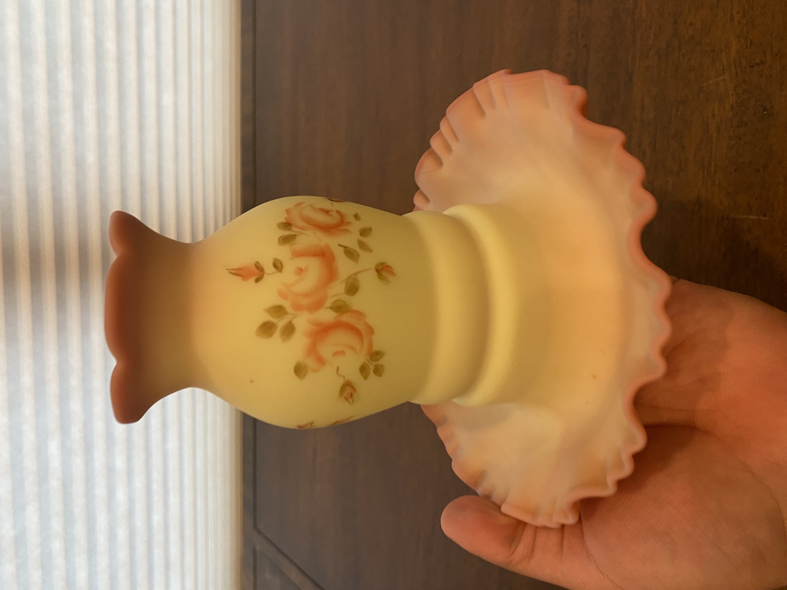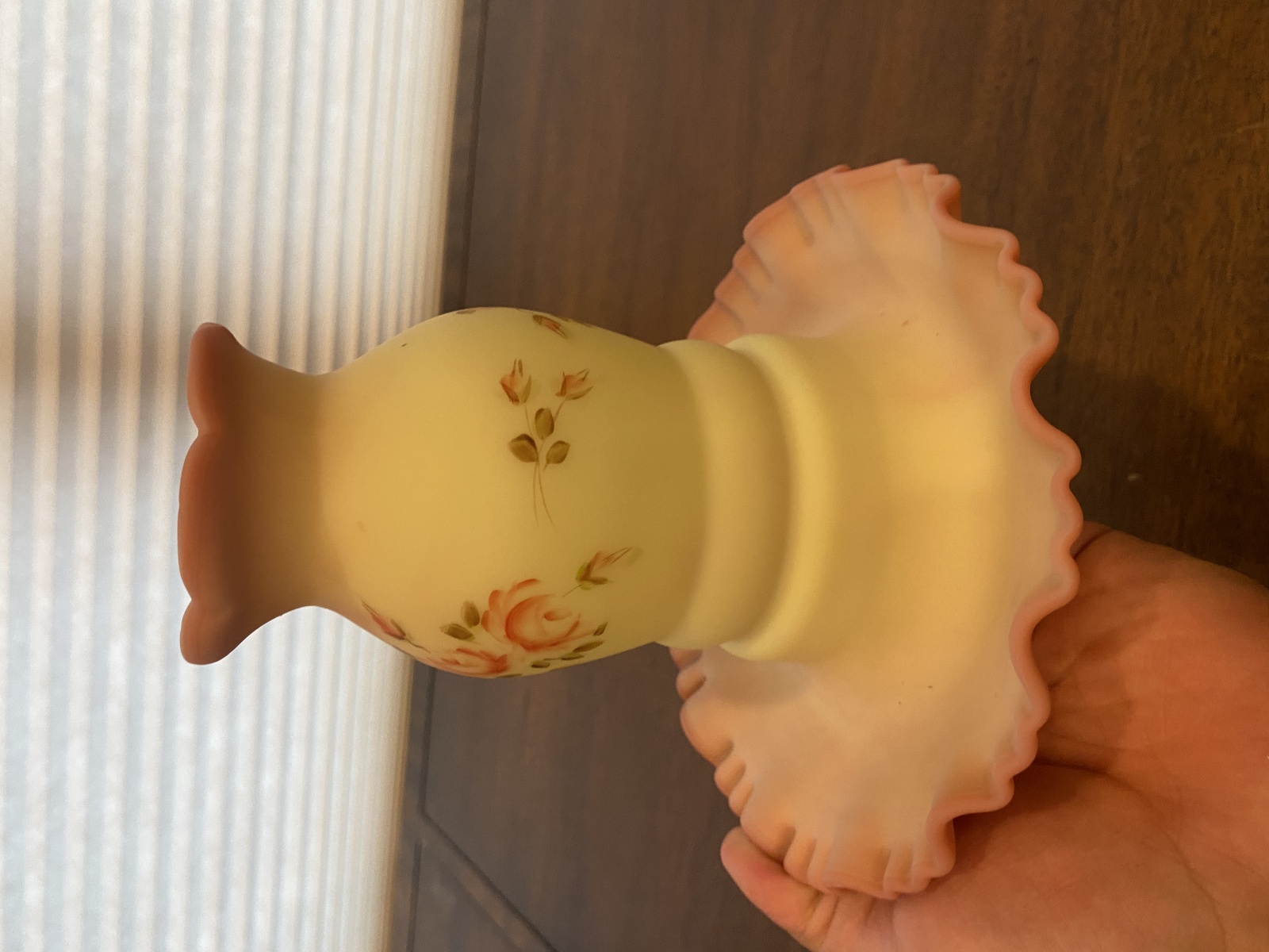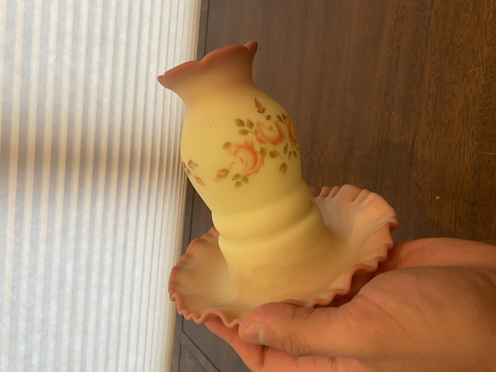 VTG UV REACTIVE FENTON Burmese"ROSES" Fairy Lamp HANDPAINTED & SIGNED 6"H