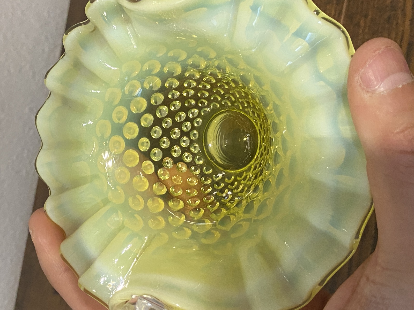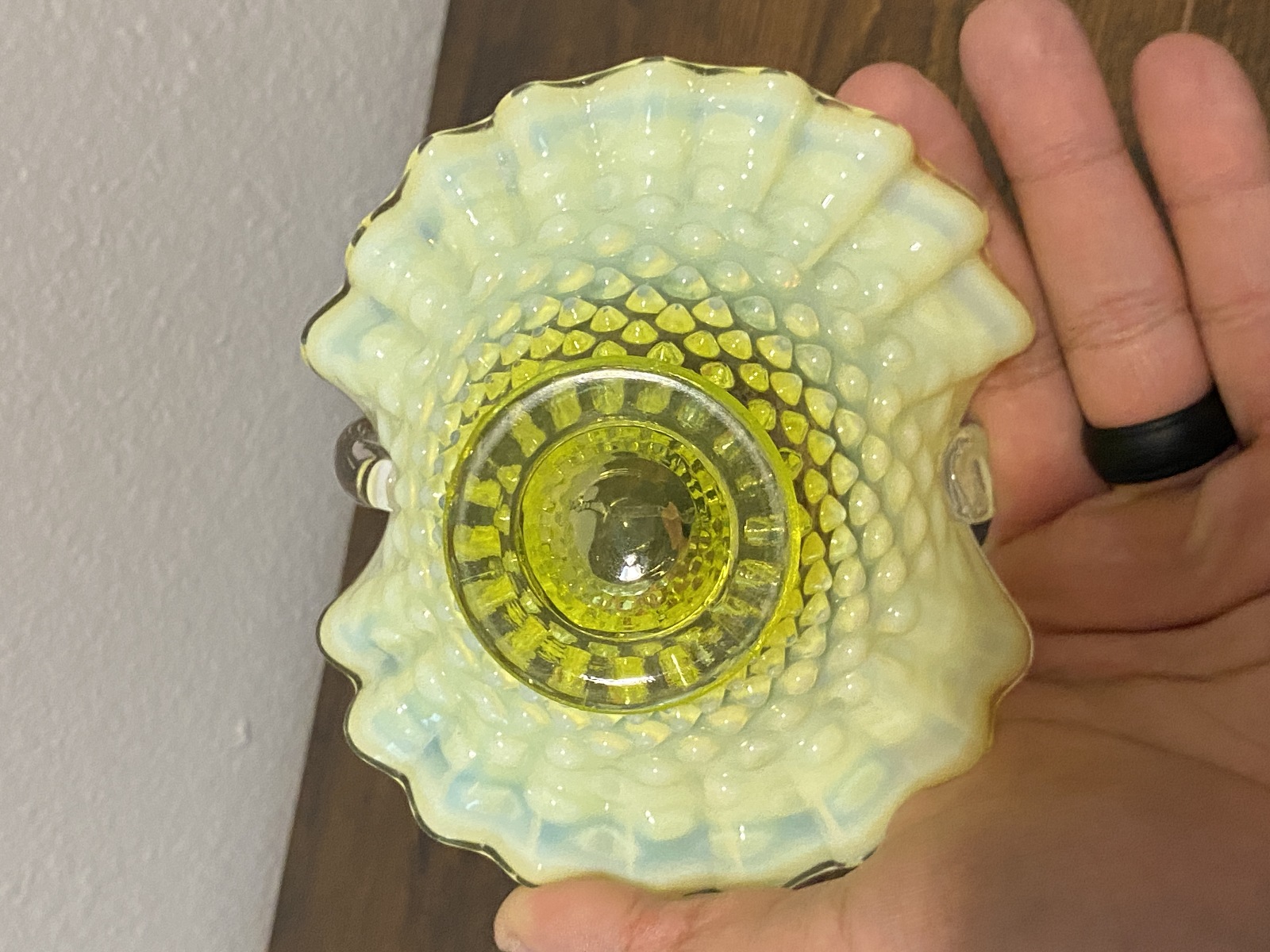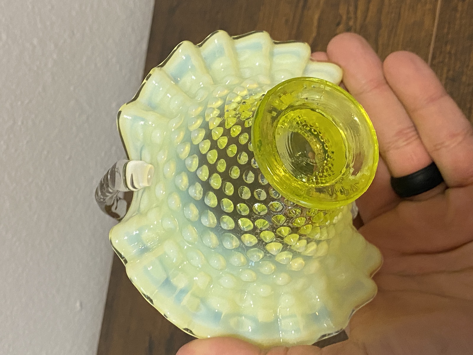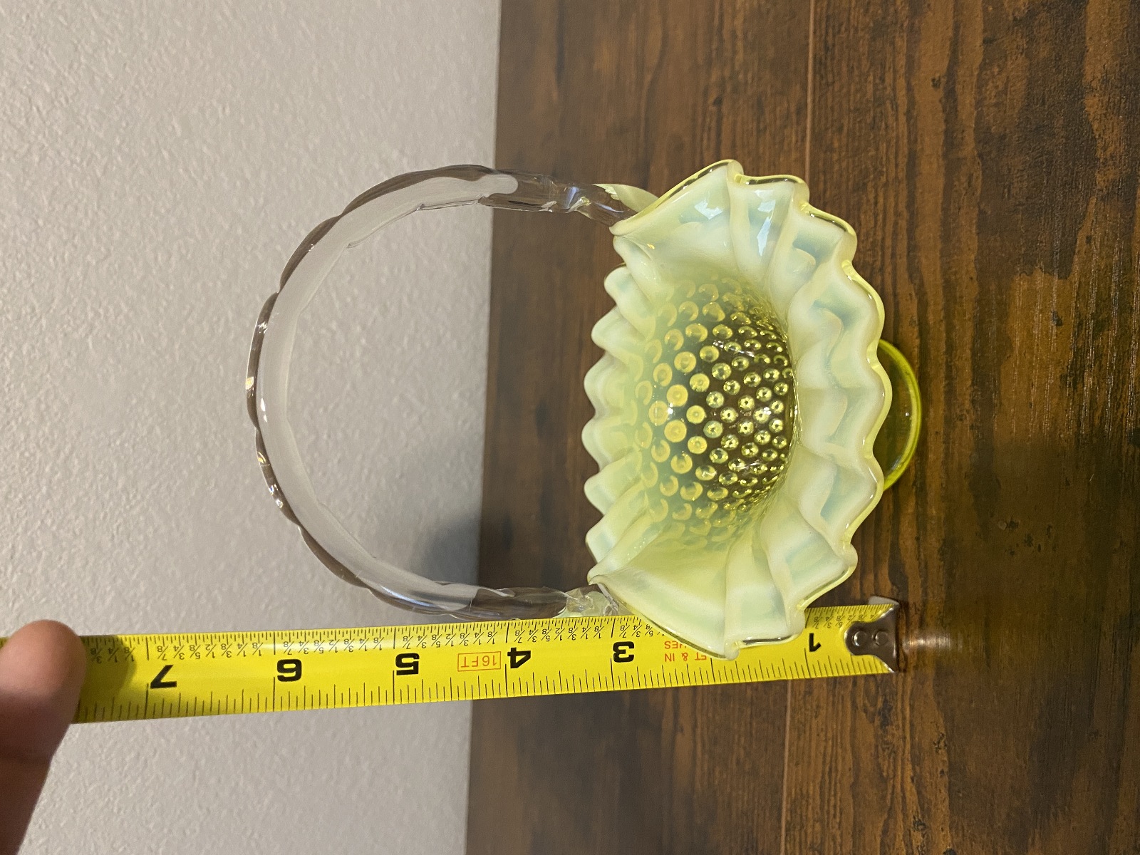 VTG UV REACTIVE FENTON Topaz Opalescent HOBNAIL Art Glass Basket 6.5"H
