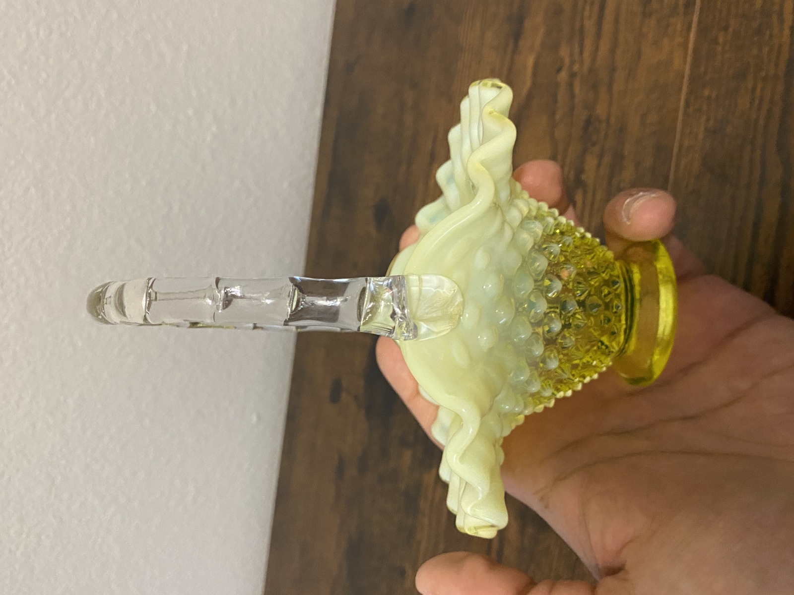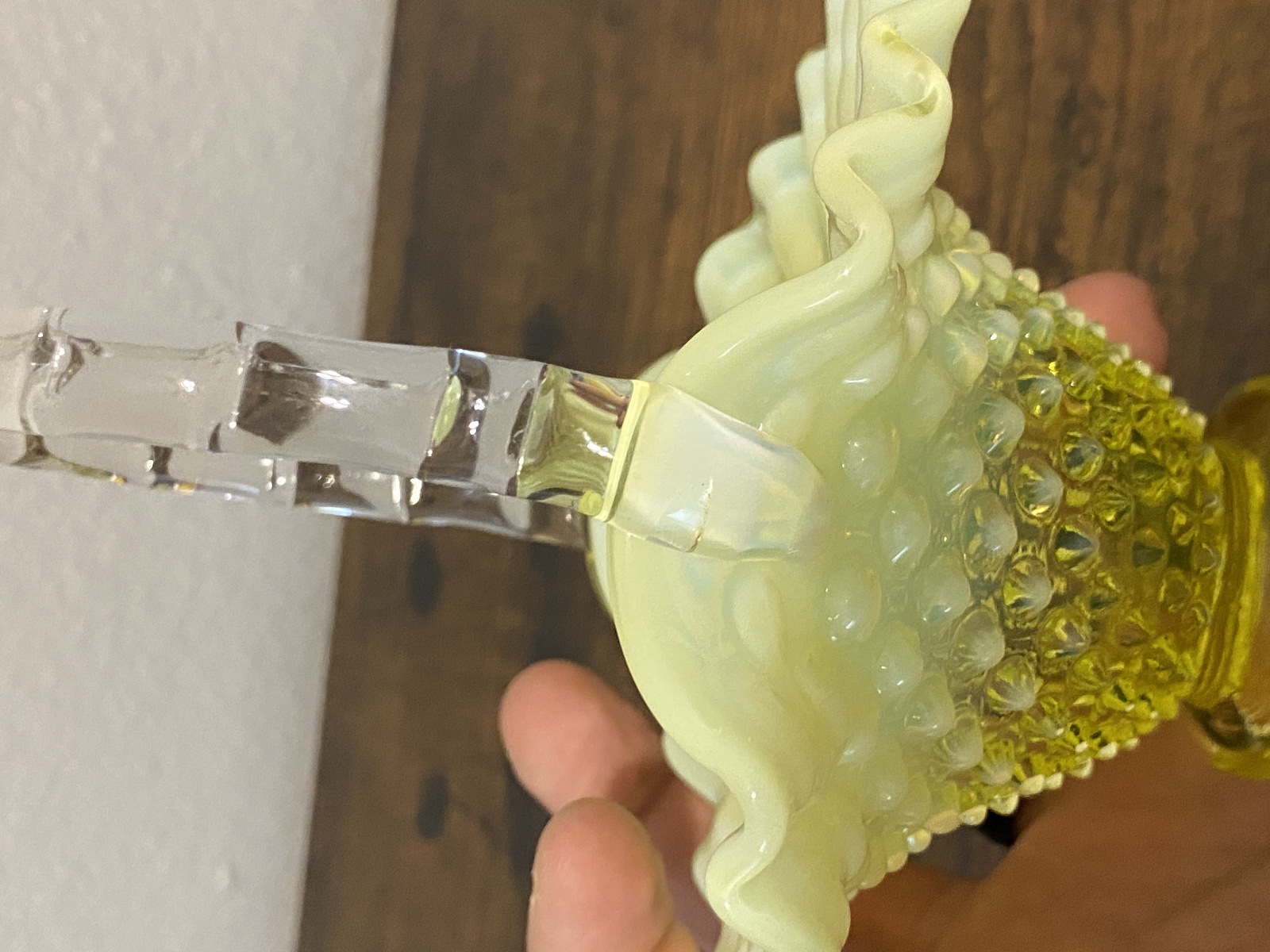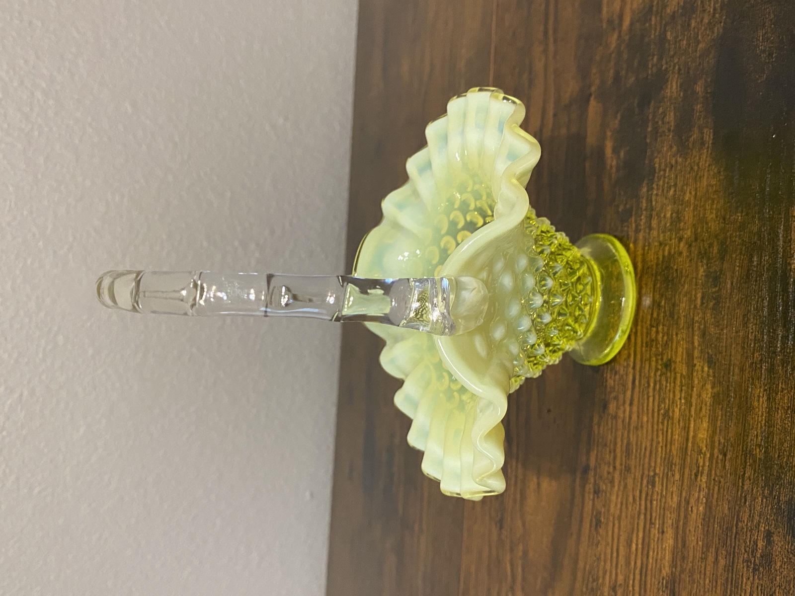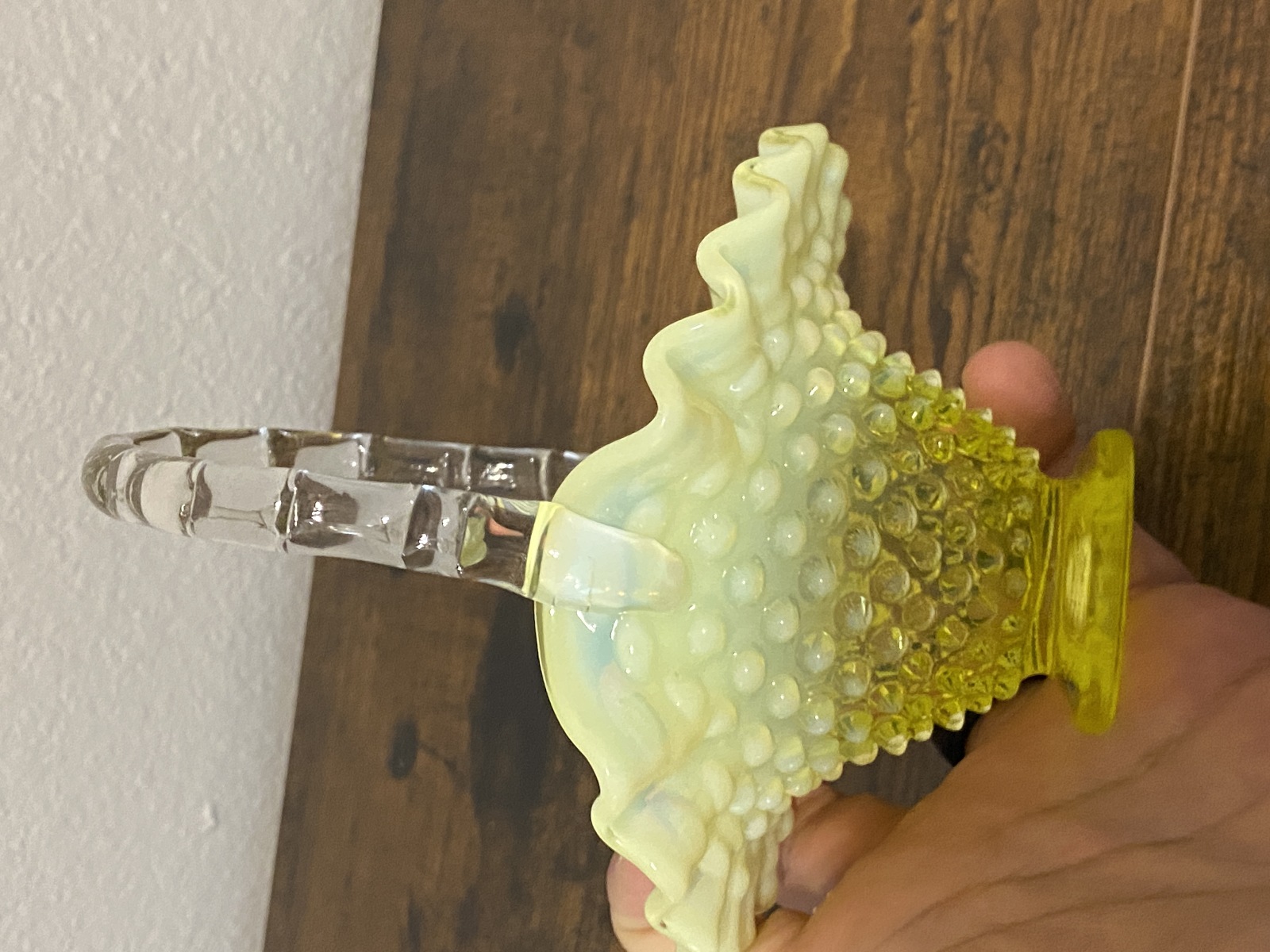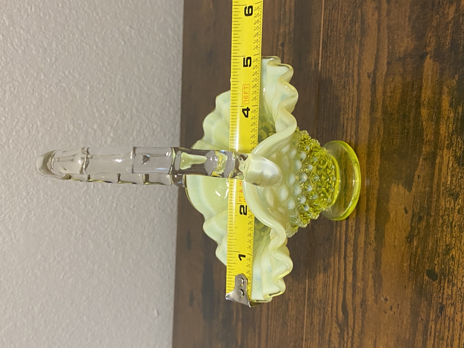 VTG UV REACTIVE FENTON Topaz Opalescent HOBNAIL Art Glass Basket 6.5"H