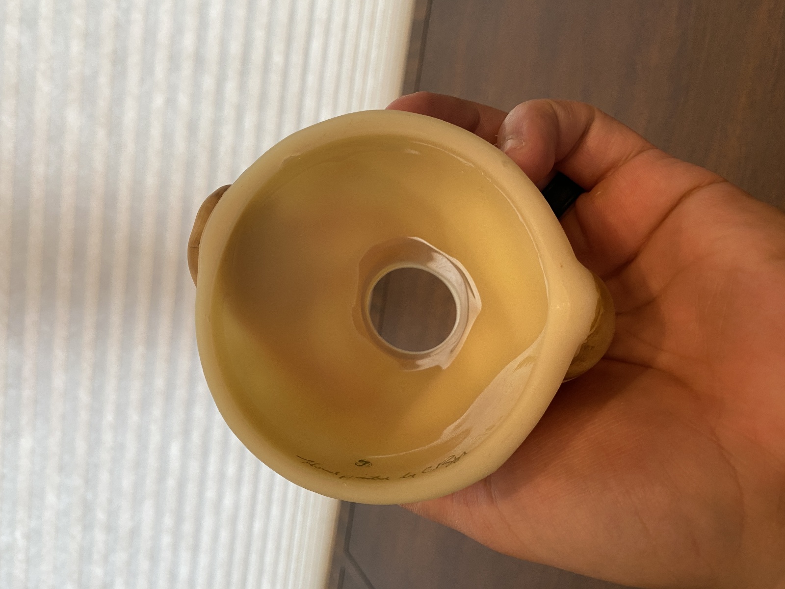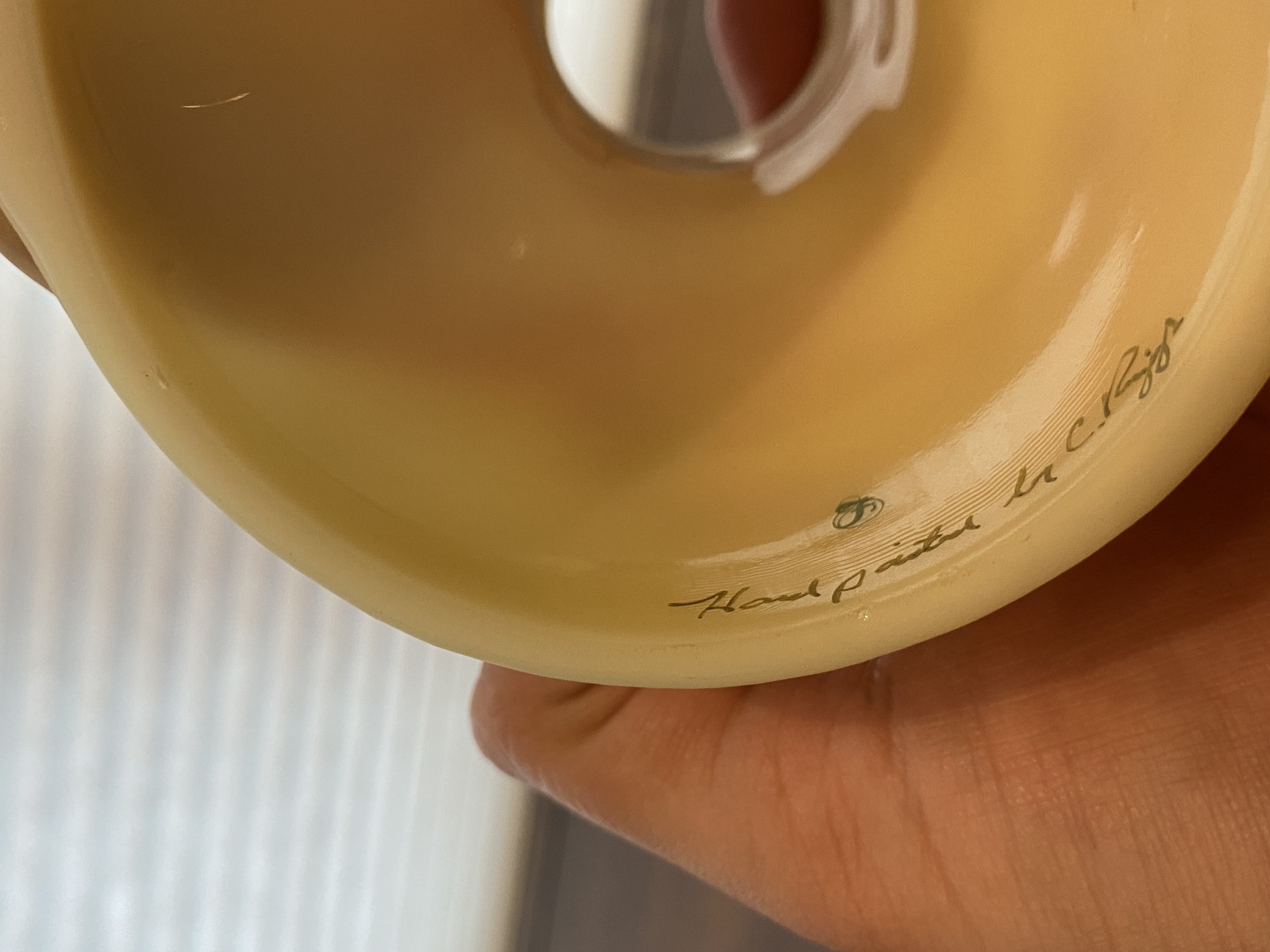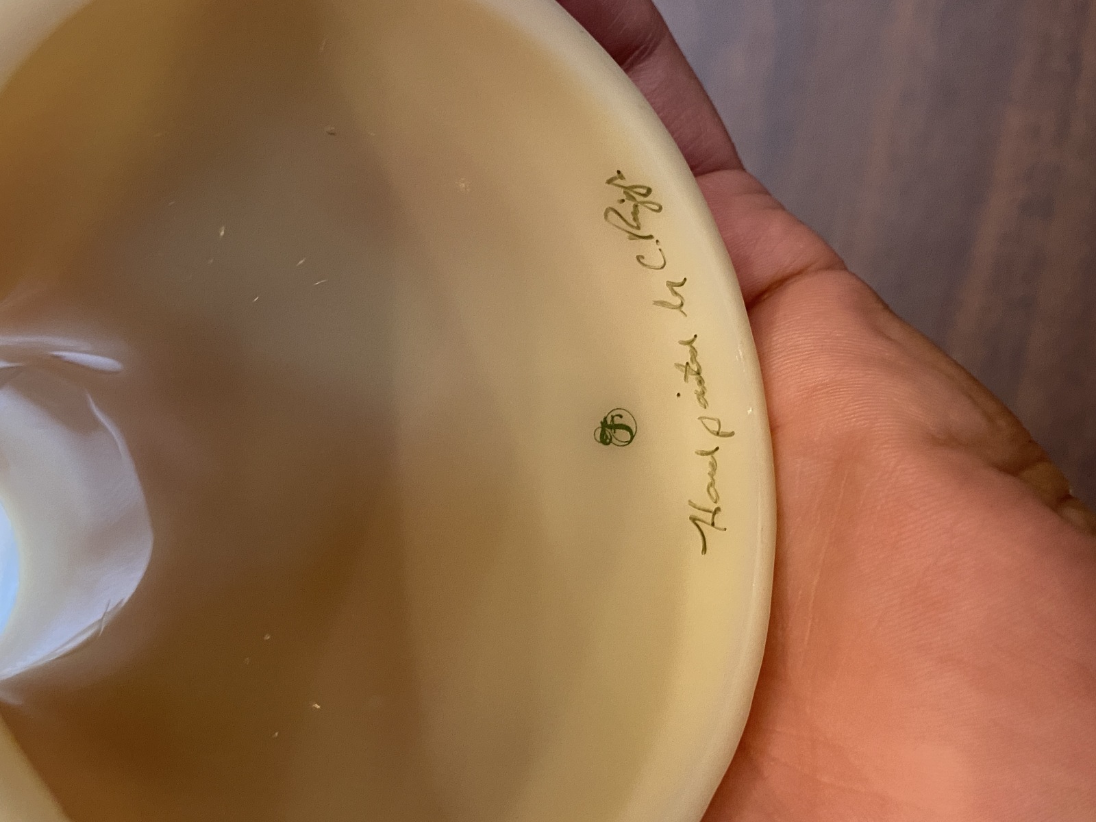 The top is in good used condition (It has some small chips on the bottom rim of it noted in the photos, and the base is in great used condition), overall still in good shape as a whole. (Please refer back to the photos for condition and feel free to message us if you have any questions, thank you)!