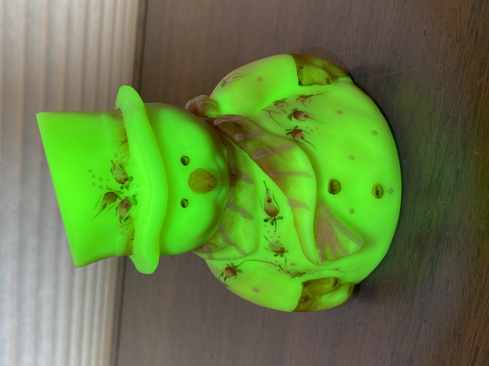 UV REACTIVE FENTON Yellow Burmese Snowman Fairy Lamp 7.25"H HANDPAINTED/SIGNED