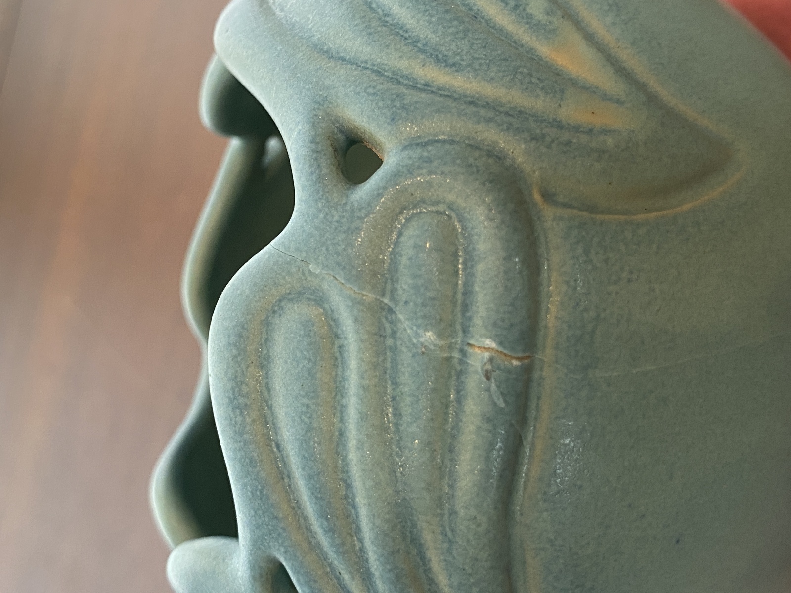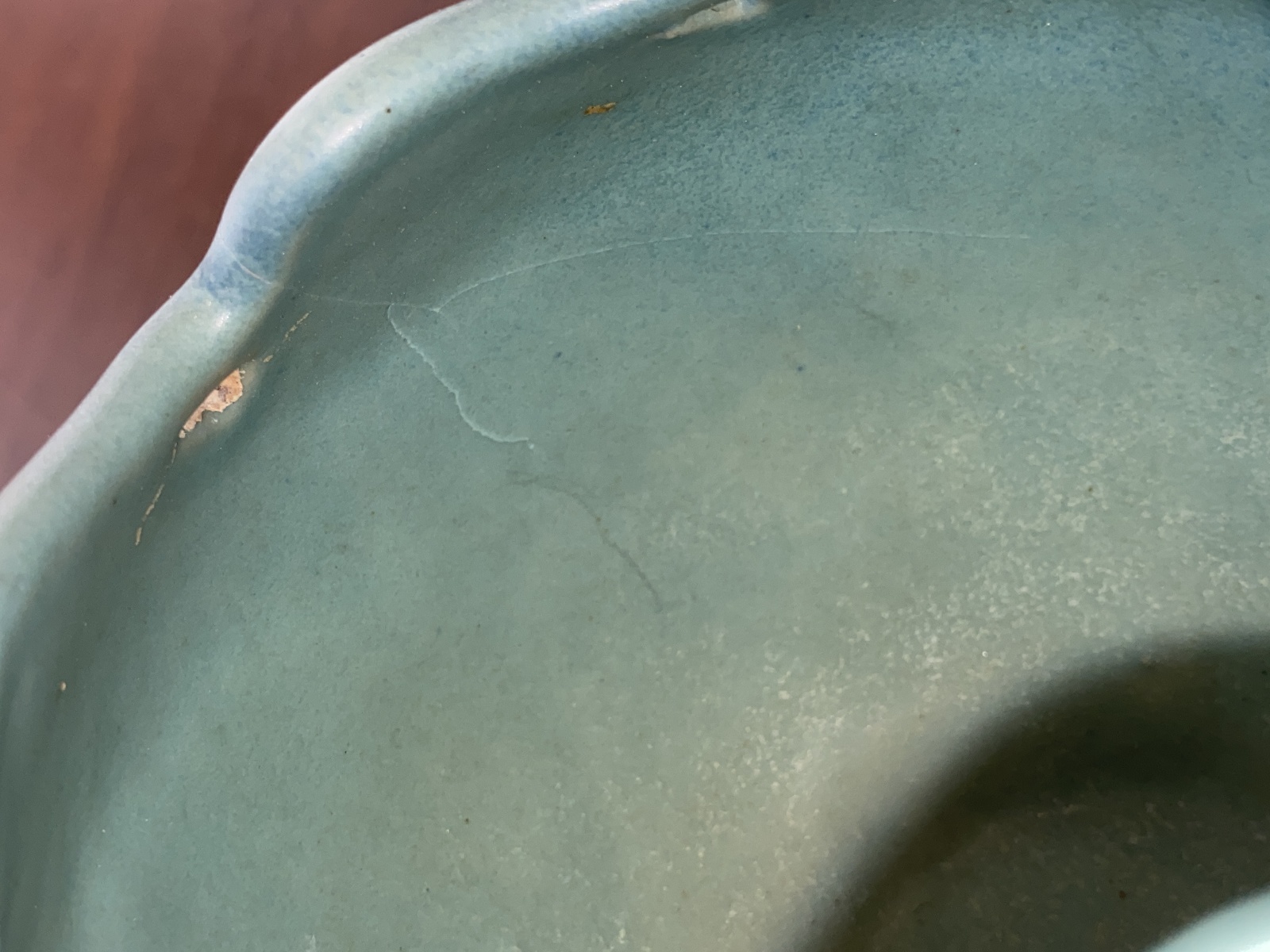 DAMAGED USED CONDITION (PLEASE NOTE THAT THIS PIECE HAS 2 LARGE CRACKS AND SOME LITTLE CRACKS THAT RUNS ON THE INSIDE AND OUTSIDE, NOTED IN THE PHOTOS, AND IT has some wear marks and scratch marks from its many years of love(age) but could still make for a good display piece). (Please refer back to the photos for condition and feel free to message me if you have any questions. Thank you)!