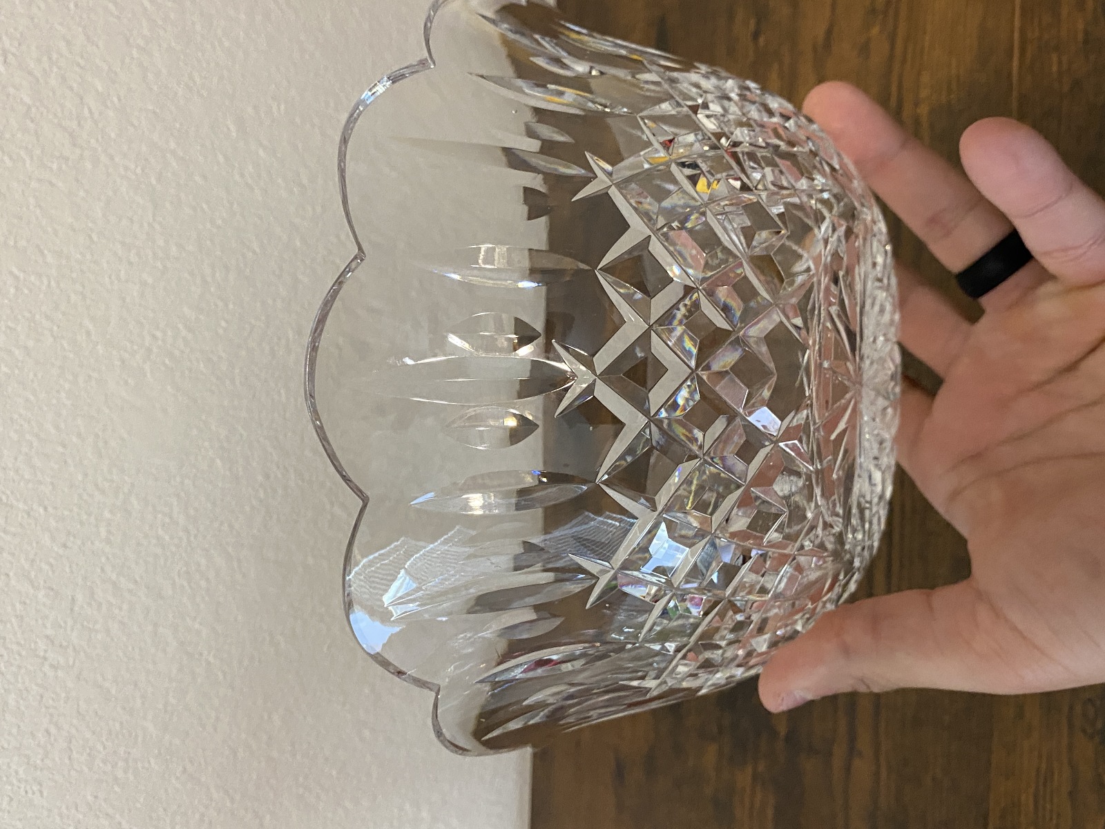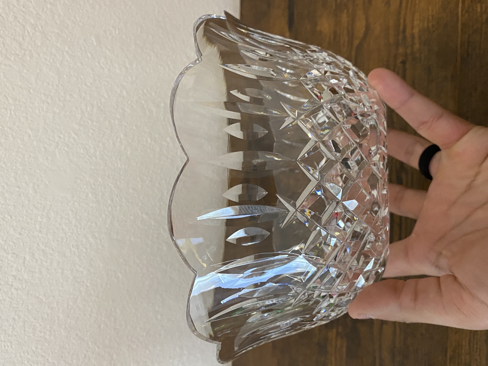 VTG WATERFORD Crystal LISMORE Scalloped Rim Bowl SIGNED 9"W