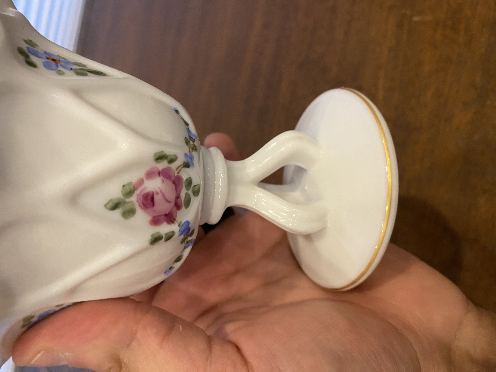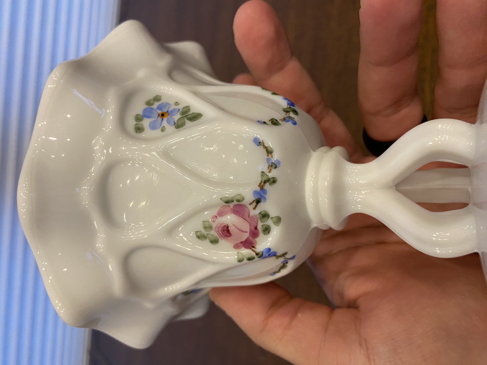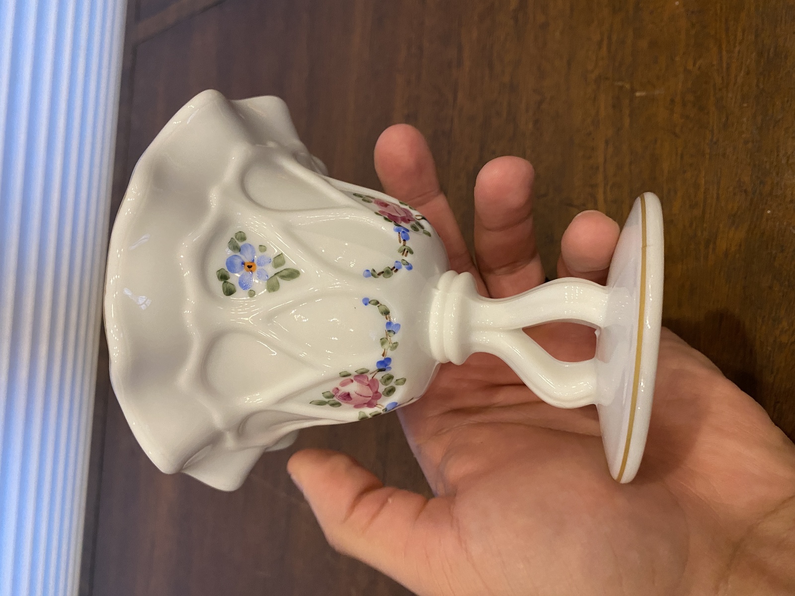VTG Westmoreland Milk Glass Floral Painted Tri Foot Compote Bowl 5"H SIGNED