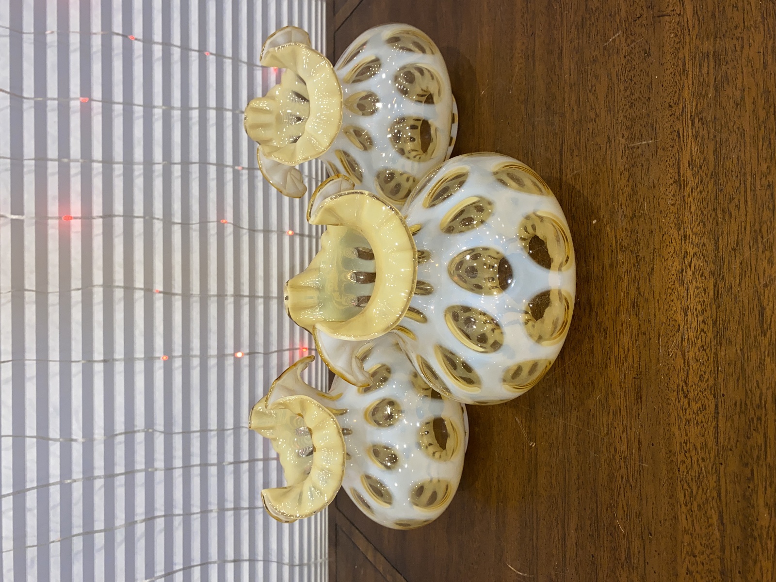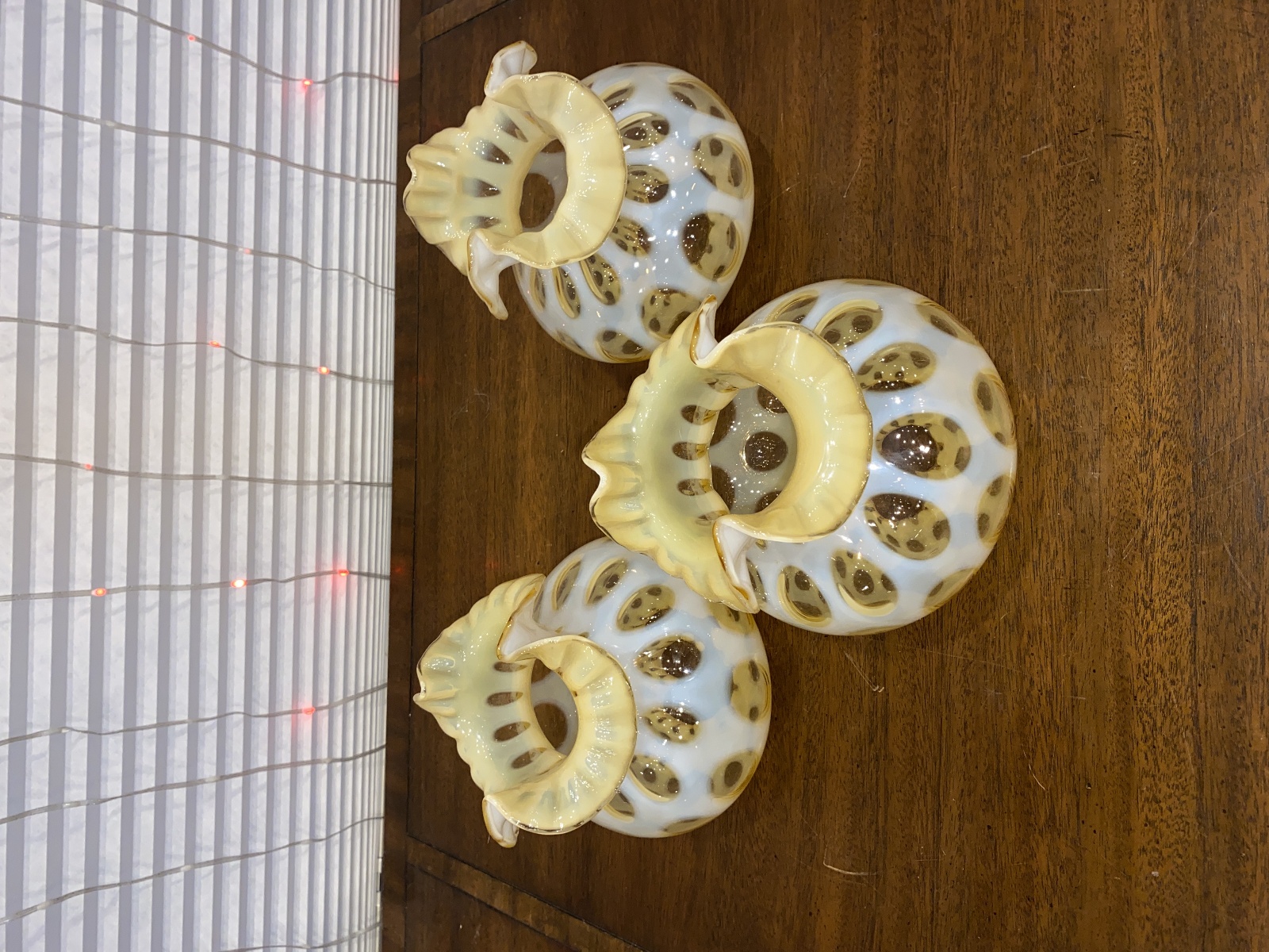 VTG SET(3) FENTON HONEYSUCKLE Opalescent Art Glass Lamp Shades 7"H