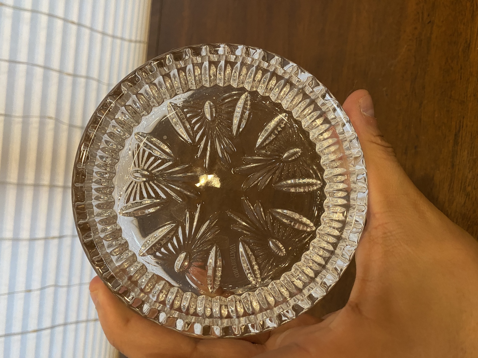 SET(4) WATERFORD Crystal BEST WISHES Bottle/Wine Coasters SIGNED 4.75"W